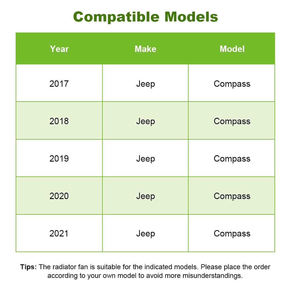 1. Ventilador de refrigeración apto para: Jeep Compass 2017-2021.
