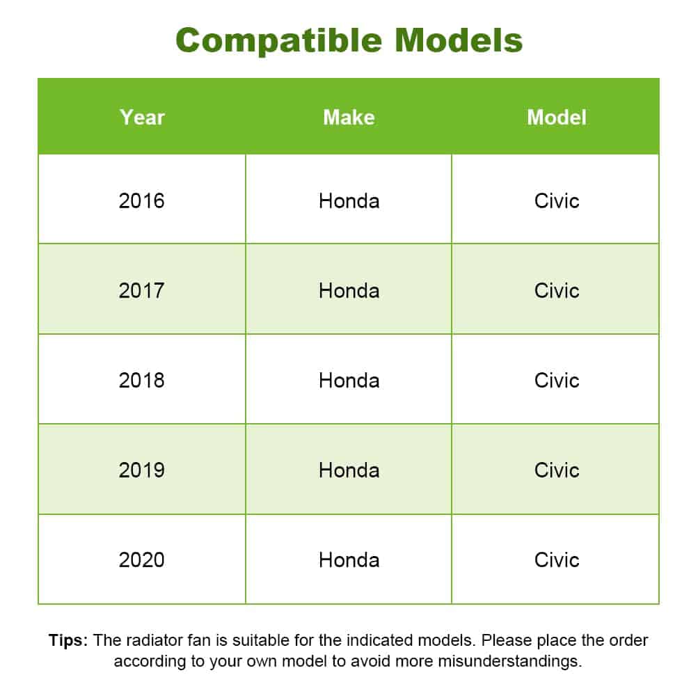 1. Ventilador de refrigeración para: Honda Civic 2016-2020.