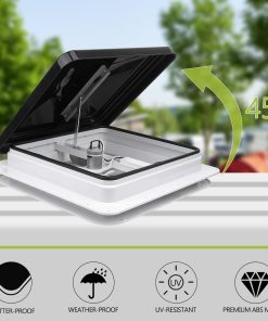 1. Mide 14″ de largo x 14″ de ancho y se ajusta a techos con un grosor de 1-1/4 a 2-1/4 pulgadas. Con el potente motor DC de 12V y las aspas de 6″, proporciona una circulación de aire fantástica para RV, camper y remolque de viaje, ayudando a bajar la temperatura y reducir olores desagradables de alimentos, humo o residuos.