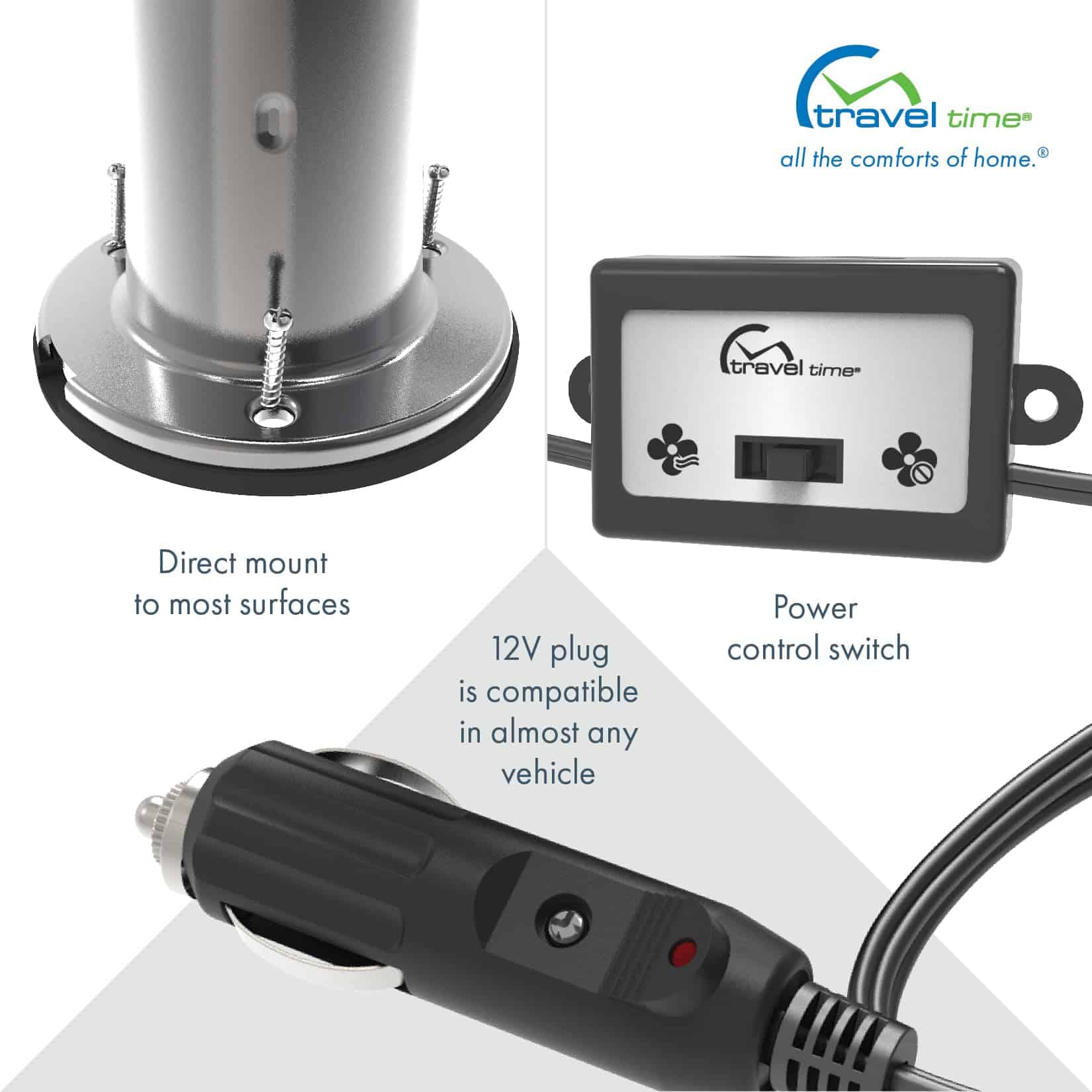 Ventilador de viaje de lujo de 2 velocidades de 12V,