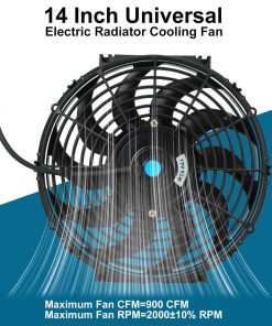 Ventilador de refrigeración del motor del radiador de 14 pulgadas de alto rendimiento con 12V, 90W de potencia. Este ventilador eléctrico del radiador viene con un kit de montaje que incluye soportes de montaje y correas de sujeción. Con un máximo de 900CFM de flujo de aire y 2000+10% RPM, este ventilador proporciona una refrigeración eficaz para el motor. Su diseño delgado garantiza la claridad del compartimento del motor, mientras que su resistencia al calor y a la corrosión aseguran una larga vida útil. Este ventilador reversible se puede utilizar como empujador o tirador, lo que lo hace versátil para una variedad de aplicaciones de refrigeración. Perfecto para radiadores, enfriadores de aceite, enfriadores de transmisión, condensadores y más, este ventilador eléctrico es la solución ideal para mantener su motor fresco y funcionando sin problemas. El paquete incluye el ventilador eléctrico del radiador de refrigeración, varillas de montaje de nylon, almohadillas de espuma, resortes y hebillas fijas para una instalación sencilla y segura.