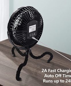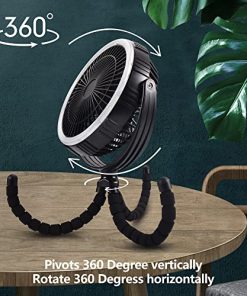 Este ventilador portátil con trípodes es diferente del ventilador tradicional que se sujeta, que puede caerse cuando el vehículo se sacude, las piernas de este ventilador son resistentes para agarrar, enrollar, colgar e incluso estar de pie. Se sujeta firmemente al manillar (redondo) y al marco (plano). Puedes sujetar el ventilador en el cochecito de bebé, cuna, carro de golf, tienda de campaña, mesita de noche, silla de ruedas y más, o puedes colocarlo en el escritorio de la oficina, ayudándote a concentrarte en el trabajo con una brisa fresca. Este ventilador de camping puede funcionar como linterna para iluminar tu tienda de campaña, habitación pequeña y alrededores cuando cae la noche para ayudarte a ver y ser visto, mantener seguro a ti y a tus compañeros y seres queridos. NOTA: 1) La batería está integrada y no se puede reemplazar, es recargable, este ventilador puede funcionar con batería o por cable USB. Por favor, carga completamente la batería del ventilador la primera vez que lo uses y cada vez antes de llevarlo para una larga duración. 2) Tardará cerca de 8 horas para cargarse completamente, por favor usa el cable USB C incluido y tu adaptador de CA con una salida de 5V/2A (no incluido en el paquete) para una carga rápida. 3) Funciona mientras se carga, pero SOLO en el PRIMER nivel de ventilador y luz mientras se carga.