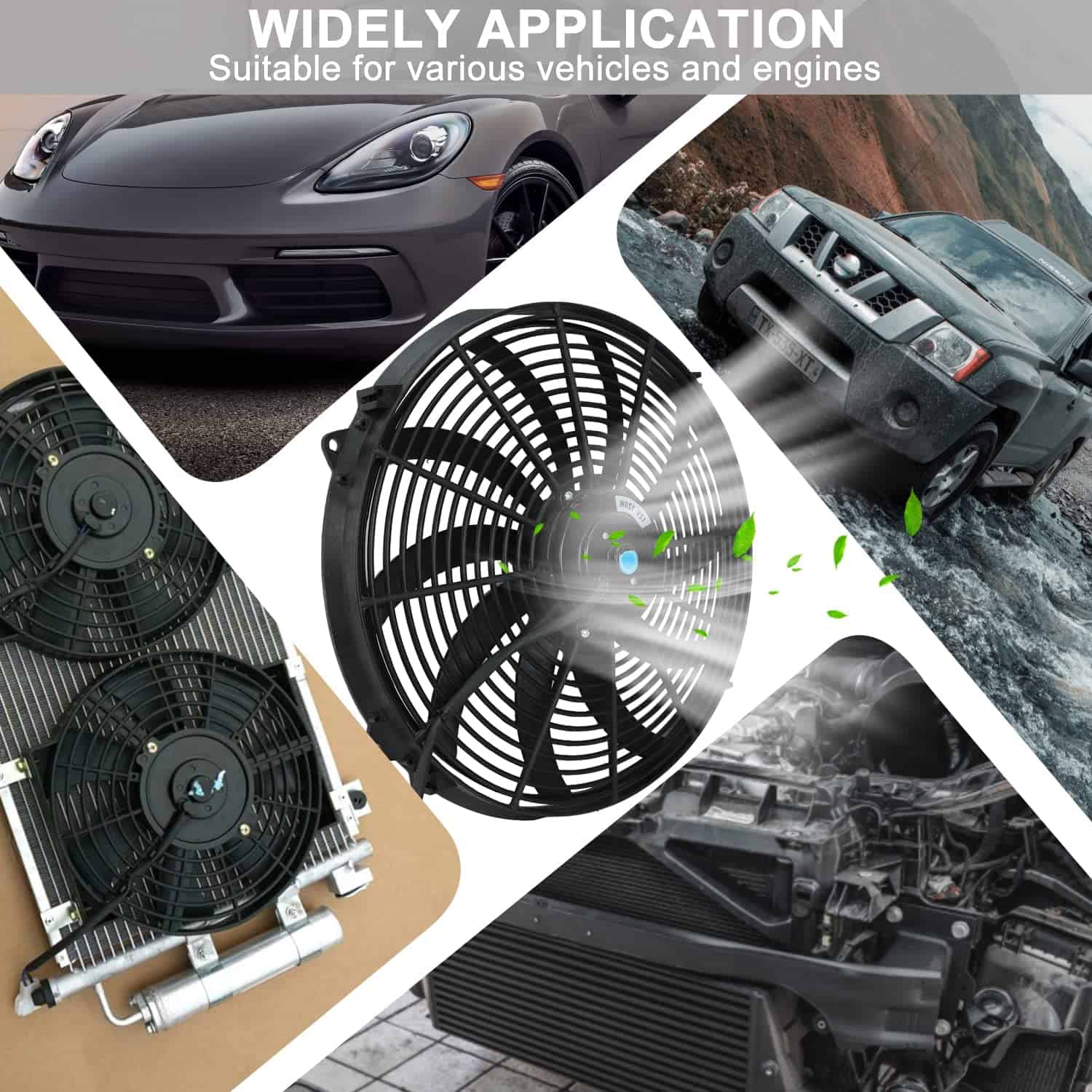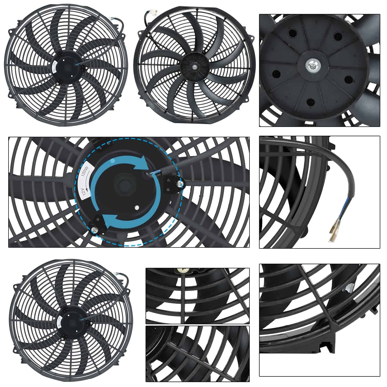Ventilador eléctrico para refrigeración de radiadores de diseño delgado que proporciona una excelente holgura en el compartimento del motor. Buena resistencia al calor y a la corrosión aseguran una larga vida útil para el radiador electrónico. El ventilador de refrigeración del radiador es reversible y puede ser utilizado como extractor. El ventilador de empuje se instala en el lado de la parrilla (frontal) del núcleo del radiador, empujando el aire a través del núcleo del radiador. El ventilador de tracción se instala en el lado del motor (posterior) del núcleo del radiador y succiona el aire a través del núcleo del radiador. Los kits de termostato son versátiles para radiadores, enfriadores de aceite, enfriadores de transmisión, condensadores y más, lo que los hace perfectos para cualquier automóvil y ventilador eléctrico. Recibirás 1 X ventilador de refrigeración del radiador eléctrico, 4 X varilla de montaje de nylon, 8 X almohadilla de espuma, 4 X resorte, 4 X hebilla fija. Si tienes alguna pregunta mientras lo usas, no dudes en contactarnos y enviarnos un correo electrónico. Te proporcionaremos un servicio satisfactorio.