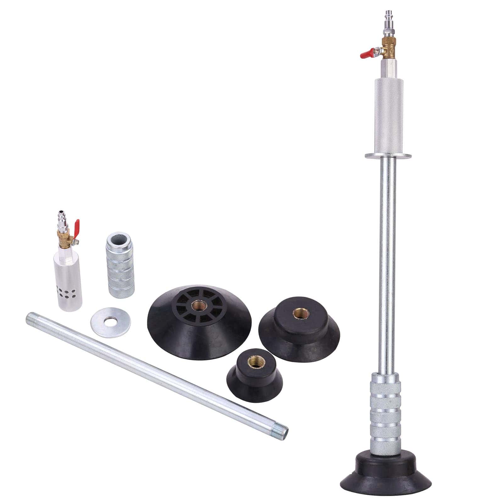Las áreas de contacto del cuerpo están envueltas con precisión con goma de alta calidad para eliminar la mayoría de las abolladuras de coches sin dañar la pintura. Esta herramienta de reparación de abolladuras es altamente eficaz no solo para coches, sino también para abolladuras en neveras, lavadoras y otras superficies metálicas. Es adecuada para cualquier tipo de abolladura de coche, y es especialmente efectiva para reparar abolladuras como las de las puertas y los daños por granizo. Gracias al ajuste del botón giratorio, el control neumático crea un excelente vacío, lo que facilita sacar la mayoría de las abolladuras de las superficies cóncavas y convexas. Con nuestro kit de herramientas para sacar abolladuras, podrás arreglar tu coche varias veces tú mismo, ahorrándote así tiempo y dinero en viajes al taller 4S. Si la ventosa no se adhiere correctamente al coche, verifica que los agujeros no estén obstruidos con suciedad. Ante cualquier problema, no dudes en contactarnos, ¡estamos aquí para ayudarte!