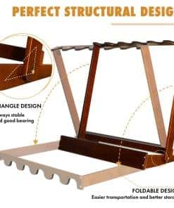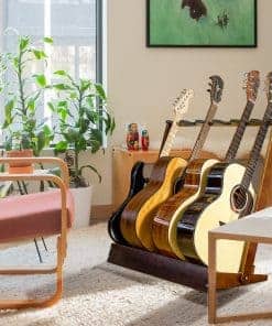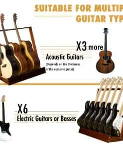 El soporte de guitarra Verovita puede contener hasta 6 guitarras eléctricas o bajos al mismo tiempo (o 4 guitarras clásicas acústicas). Perfecto para almacenar diferentes tipos de instrumentos como guitarras clásicas, bajos, folk, flamenco, etc. Fabricado con madera de haya seleccionada al 100% de alta calidad, secada cuidadosamente y recubierta con un revestimiento respetuoso con el medio ambiente para aumentar la vida útil del soporte de guitarra y garantizar máxima estabilidad para prevenir vuelcos o roturas. Mejor agarre que los soportes metálicos. Diseño triangular ultraestable con una parte superior ondulada para evitar que las guitarras se golpeen entre sí. Revestido con goma anticolisión de 5 mm de espesor en todas las superficies de contacto para proteger tus guitarras de cualquier posible daño. Fácil de instalar con un destornillador, diseño portátil que se puede plegar en un solo paso en un segundo sin necesidad de desmontar. Además, es un objeto decorativo por sí solo, con líneas limpias y suaves, que combina la practicidad y la decoración. Puede ser utilizado en la sala de práctica, dormitorio, estudio, sala de estar y escenario. Deja que tus guitarras se conviertan en el foco artístico. Ofrecemos un servicio al cliente del 100%, ¡si tienes alguna pregunta, puedes ponerte en contacto con nuestro servicio al cliente y lo resolveremos de todo corazón!