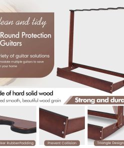 El soporte de guitarra verovita para múltiples guitarras es la solución perfecta para organizar y exhibir sus instrumentos musicales de forma segura y elegante. Con capacidad para hasta 7 guitarras eléctricas o bajos al mismo tiempo, este soporte de madera de haya ofrece una excelente estabilidad y durabilidad. El diseño cuidadosamente elaborado garantiza que sus guitarras estén protegidas de posibles daños, gracias a la capa de goma anticolisión en todas las superficies de contacto. Además, la construcción triangular ultra estable evita que las guitarras se golpeen entre sí. Este soporte de guitarra es fácil de instalar con un destornillador y se pliega en un solo paso, lo que lo hace ideal para llevarlo a actuaciones fuera de la ciudad. Con un diseño elegante y versátil, este soporte de guitarra se puede utilizar en la habitación de práctica, dormitorio, estudio, sala de estar y en el escenario, convirtiéndose en una pieza decorativa por derecho propio. Brinde a sus guitarras el cuidado y la exhibición que se merecen con el soporte de guitarra verovita.