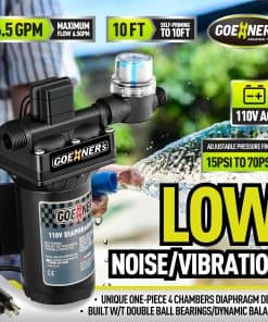 Bomba de Agua 110V AC Versión Mejorada, 6.5GPM 70 PSI Autocebante de Diafragma con Enchufe de Corriente, Interruptor de Presión, Conector de Latón y Colador, para Cocina Baño Manguera de Jardín. Su diseño de Bajo Ruido lo hace ideal para diversas aplicaciones como presurización de agua, lavado de autos, grifos, duchas, riego agrícola, transporte de líquidos no inflamables, riego y pulverización de jardines, etc. Viene con una garantía de fábrica de 3 años.