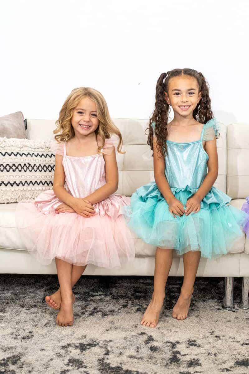 La tela transparente y el corsé brillante hacen de este vestido una encantadora combinación de suavidad y magia, convirtiendo a cualquier niño en una pequeña princesa lista para una ocasión especial. Las mangas de mariposa son una característica encantadora que añade un toque de elegancia juguetona. Tonos pastel suaves de múltiples capas de tela suave que son lujosamente suaves. La iridiscencia de la tela del corsé muestra colores cambiantes que se mueven con gracia y se estiran para adaptarse a diferentes tipos de cuerpo. No hay enaguas ni telas ásperas, y viene con costuras y dobladillos completamente terminados. No hay botones ni cremalleras que puedan frustrar a los pequeños dedos, ¡y lo mejor de todo es que es lavable a máquina! ¿Tienes una pequeña princesa que ama las fiestas de té, bailar, jugar con muñecas y usar vestidos de princesa, pero no soporta las telas o costuras ásperas e incómodas ¿O es tu princesa del tipo industrial, prefiriendo peleas de agua a fiestas de té, correr a caminar, y vivir en sus disfraces, pero puede superar a cualquier vestido de princesa disponible Entonces Little Adventures es tu respuesta. Diseñado por dos mamás, Jenny y Heather, con sus pequeños príncipes y princesas, los productos de Little Adventures son ¡DISFRACES HECHOS PARA JUGAR TODOS LOS DÍAS! Heather y Jenny estaban frustradas por el hecho de que los disfraces no se podían lavar. Las telas se desgastarían en la lavadora y muchas estaban hechas solo para ser lavadas en seco, una idea absolutamente absurda para una mamá práctica. ¡Sabían que tenía que haber una mejor manera! ¡Así que comenzó Little Adventures! (Corona, diademas de flores y otros accesorios se venden por separado). ¡CÓMODO – LAVABLE – JUEGO DE TODOS LOS DÍAS – PORQUE LA NIÑEZ ES UNA AVENTURA!