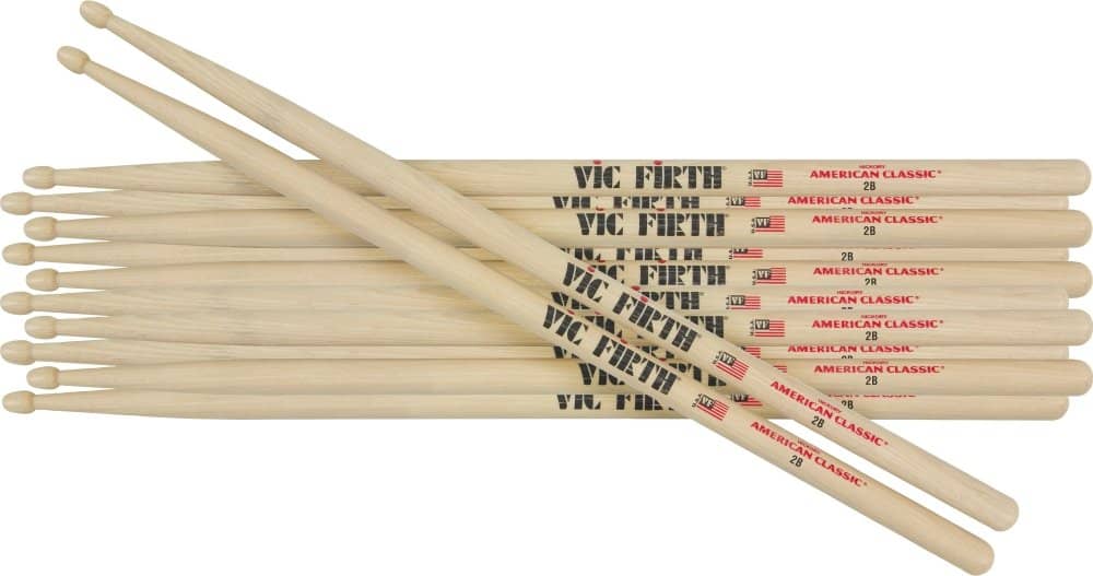 Vic Firth 6-Pares American Classic Baquetas de Hickory Madera 5B. Con diseños audaces para un sonido más completo y puntas profundamente cortadas para una respuesta de platillo intensificada, los American Classics están hechos de hickory selecto, mejorando aún más su durabilidad y sonido.