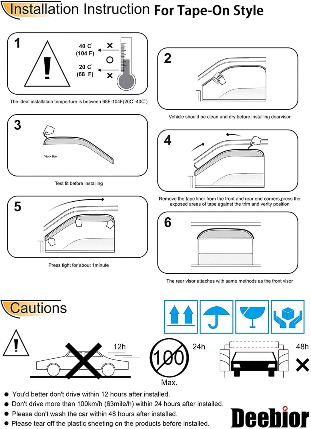 5. INSTALACIÓN FÁCIL: Nuestros Deflectores de Ventanas se montan con cinta adhesiva para un agarre extra fuerte, no se necesita perforar y no interferirán con el movimiento de las ventanas hacia arriba y hacia abajo.