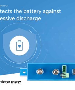 BatteryProtect BP-100 – 100AMP – 6-35 VDC Características: El BatteryProtect desconecta la batería de cargas no esenciales antes de que se descargue por completo (lo cual dañaría la batería) o antes de que tenga poder insuficiente para arrancar el motor. Auto rango de 12/24V: El BatteryProtect detecta automáticamente el voltaje del sistema. Programación sencilla: El BatteryProtect se puede configurar para activar/desactivar a varios voltajes diferentes. La pantalla de siete segmentos indicará qué configuración se ha elegido. Configuración especial para baterías de Li-ion: En este modo, el BatteryProtect puede ser controlado por el VE.Bus BMS. Nota: el BatteryProtect también se puede utilizar como interrupción de carga entre un cargador de batería y una batería de Li-ion. Consulte el diagrama de conexión en el manual. Consumo ultra bajo de corriente: Esto es importante en el caso de baterías Li-ion, especialmente después de un apagado por bajo voltaje. Consulte nuestra hoja de datos de baterías Li-ion y el manual del VE.Bus BMS para más información. Protección contra sobretensiones: Para evitar daños a cargas sensibles debido a sobretensiones, la carga se desconecta siempre que el voltaje de CC exceda 16V respectivamente 32V. A prueba de ignición: No hay relés, sino interruptores MOSFET, y por lo tanto no hay chispas. Salida de alarma retardada: La salida de alarma se activa si el voltaje de la batería cae por debajo del nivel de desconexión preestablecido durante más de 12 segundos. Arrancar el motor no activará la alarma. La salida de alarma es una salida de colector abierto a prueba de cortocircuitos a la corriente negativa (menos) máxima de 50 mA. La salida de alarma se utiliza típicamente para activar un zumbador, LED o relé. Desconexión de carga retardada y reconexión retardada: La carga se desconectará 90 segundos después de que se haya activado la alarma. Si la tensión de la batería vuelve a aumentar hasta el umbral de conexión dentro de este período de tiempo (después de que se ha arrancado el motor, por ejemplo), la carga