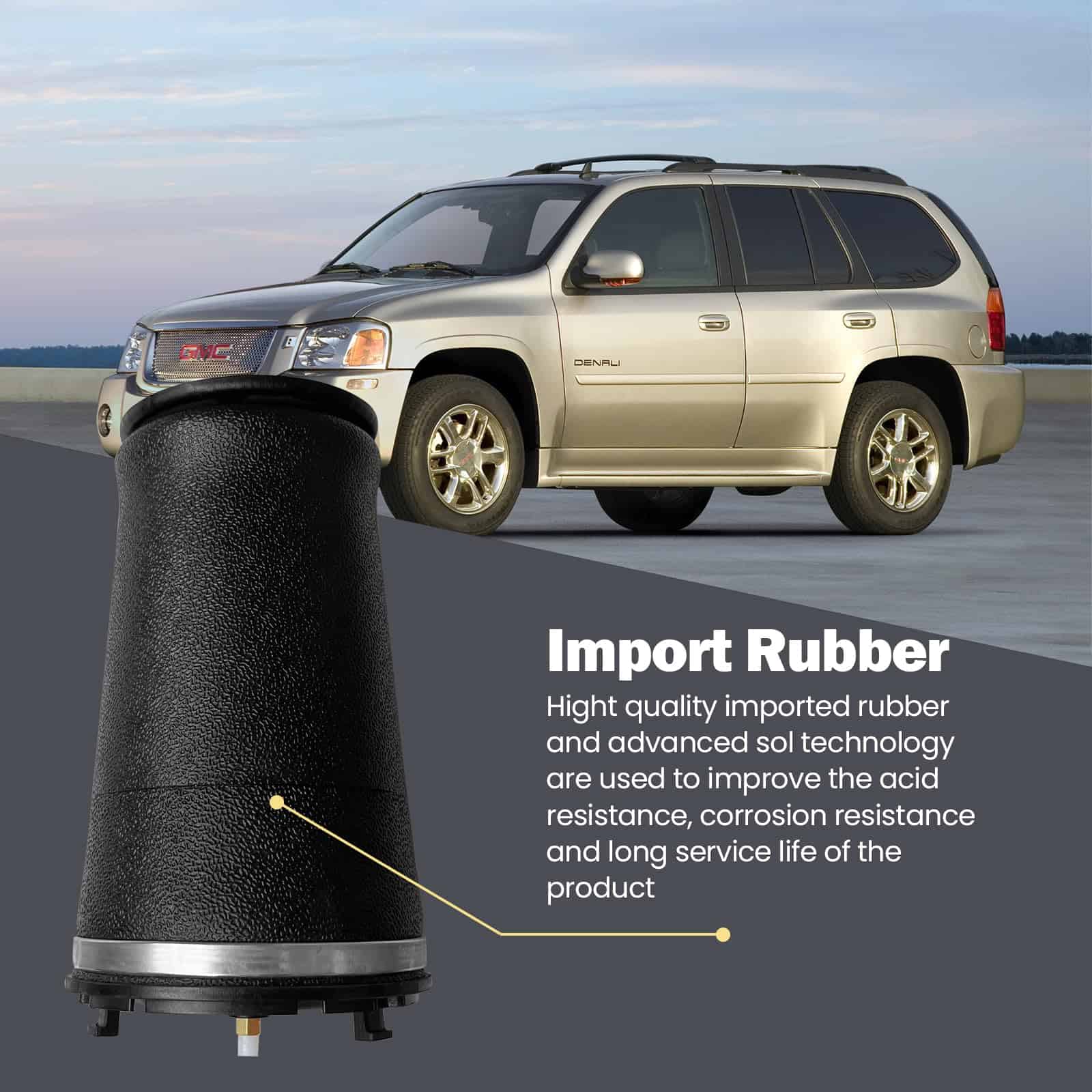 Resortes de Suspensión de Aire Trasero VIGOR, Compatible con Chevy Trailblazer EXT GMC Envoy XL Saab 9-7X Car Olds Bravada. Este resorte de suspensión de aire trasero es el reemplazo perfecto para su vehículo. Fabricado con goma de alta densidad importada, este resorte de aire ofrece una mayor durabilidad y un mejor rendimiento de carga en comparación con los resortes de aire convencionales. Al instalar este resorte de aire en su vehículo, experimentará una conducción más suave y cómoda, ya que absorbe vibraciones y maximiza la comodidad y la seguridad de los pasajeros. Este resorte de suspensión de aire cumple con los estándares OEM y es compatible con varios modelos de vehículos, incluidos Buick Rainier, Chevy Trailblazer, GMC Envoy, Isuzu Ascender, y más. Compre con confianza sabiendo que ofrecemos una garantía de 12 meses y 100% de garantía de calidad. Verifique la compatibilidad con su vehículo antes de realizar la compra para garantizar la instalación correcta.