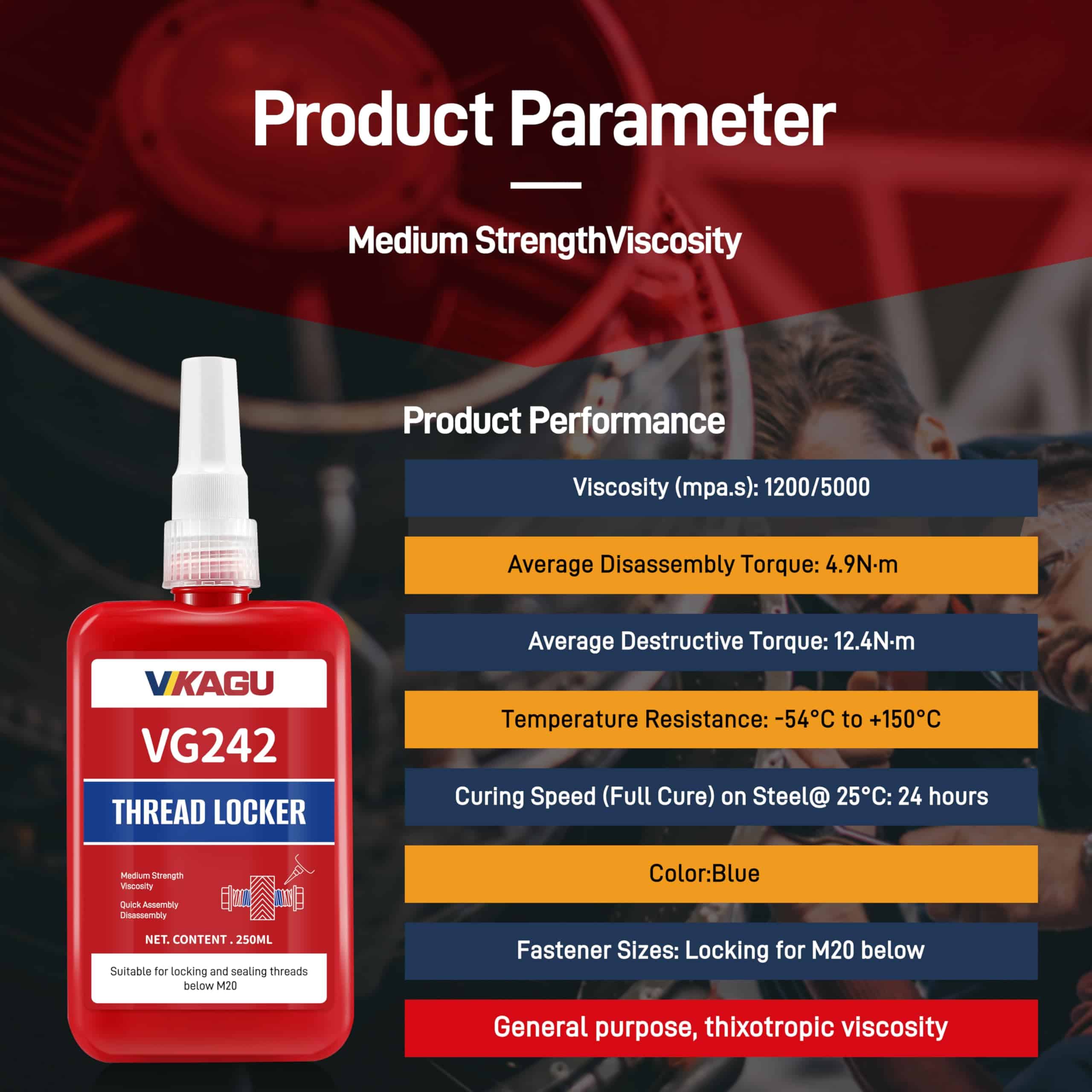 VIKAGU 242 Thread Lock, Pegamento de Rosca de Fuerza Media