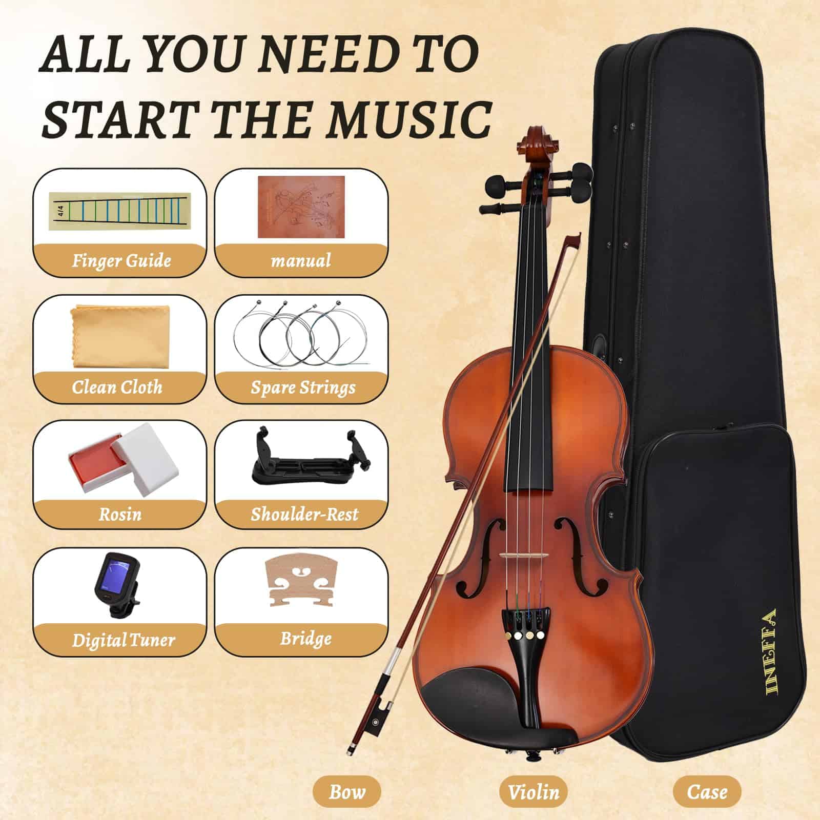 Violín 3/4 INEFFA para Principiantes y Adultos con Estuche