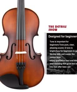 Características Clave: Materiales: tapa sólida de abeto, parte trasera sólida de arce, accesorios de ébano, cuerda de aleación de aluminio-magnesio Accesorios: 1 x estuche (estuche tradicional en forma de triángulo, ligero y conveniente con materiales de oxford, espuma y terciopelo) 1 x arco (cola de caballo de alta calidad, vara de palo de brasil, rana de ébano, almohadilla de gamuza, bobinado de cuproníquel) 1 x puente, 1 x cuerdas Violín o accesorios pueden dañarse durante el envío, por favor contáctanos y reemplazaremos los accesorios o violín dañados