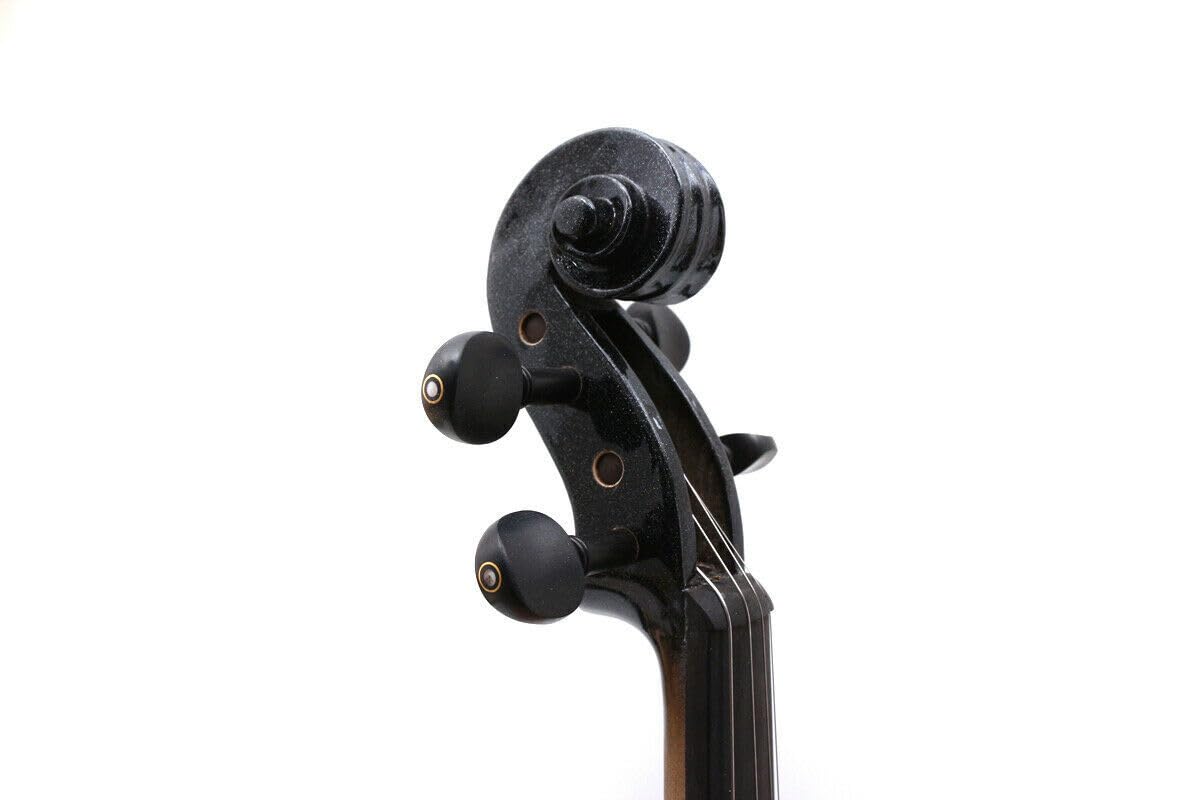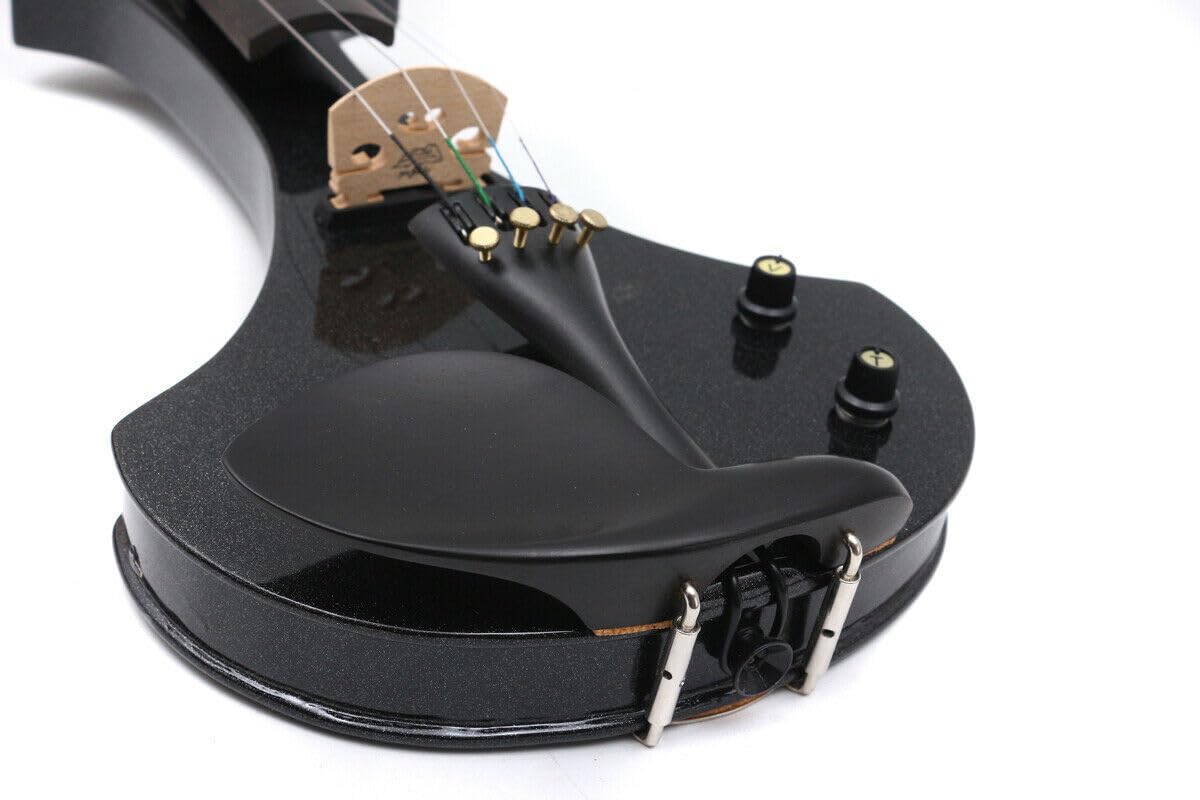 Violín eléctrico de alta calidad con silenciador incorporado, construcción de arce macizo tallado a mano, hermoso acabado metálico, piezas de calidad y ébano y diapasón hecho a mano, descansa barbilla y clavijas, puntera agradable con afinadores finos, sistema eléctrico silencioso de alta calidad incluye: cable Jack de 1/4» o 1/8», puedes conectar al AMP más popular, estuche rígido de nylon acolchado duradero de lujo con correas de mochila y bolsillo con cremallera, arco ébano con incrustaciones de nácar y crin de caballo mongol genuino sin blanquear, cable AUX.