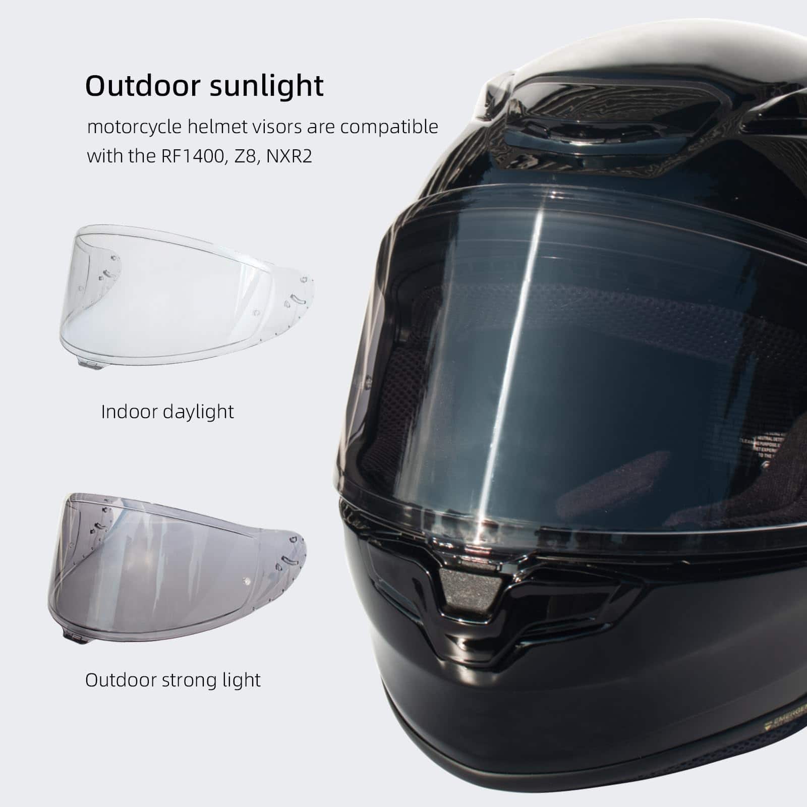 4. Modelos de casco CWR-F2 – Las viseras de casco de motocicleta son compatibles con el RF1400, Z8, NXR2. Tenga en cuenta que no recomendamos usar esta visera de casco con otros modelos de casco no mencionados.