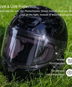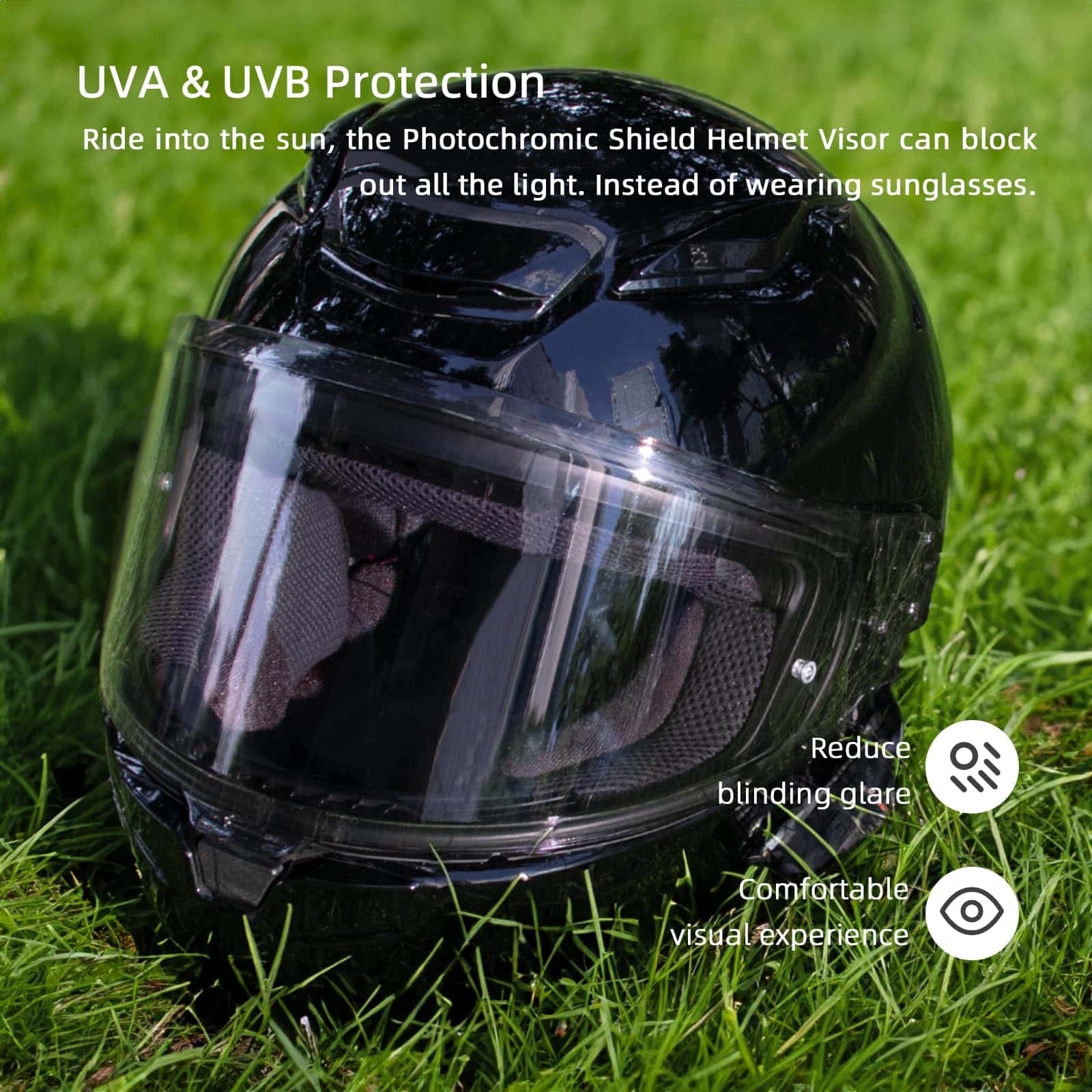 2. Protección 100% UVA y UVB y un recubrimiento resistente a los arañazos. El recubrimiento funciona perfectamente y elimina la necesidad de gafas de sol debajo de su casco, montar bajo la luz directa del sol no es un problema real.