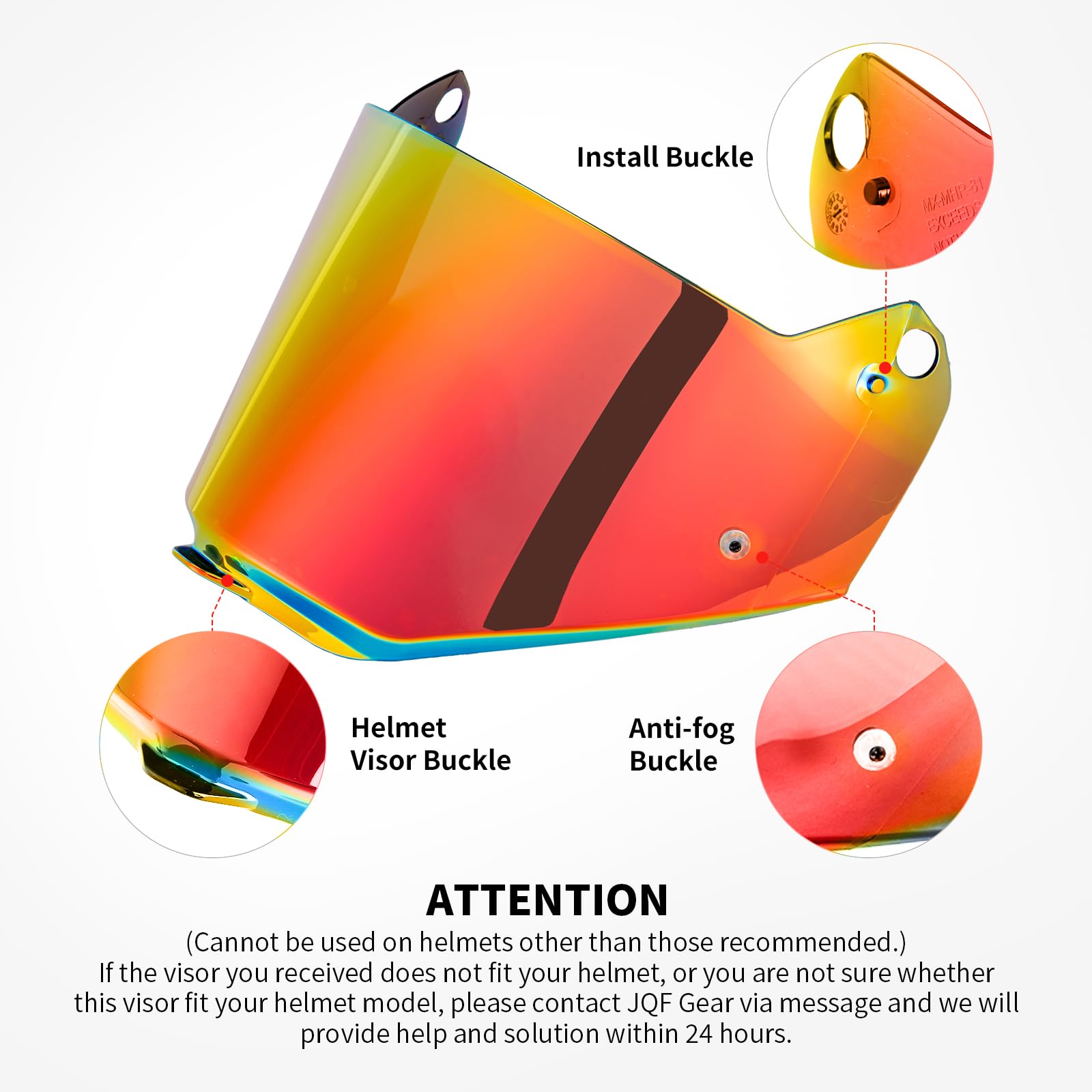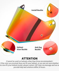 Visera de Casco de Motocicleta JQF Gear para Reemplazo de Casco PIONEER EVO Visera Universal. Material: PC. Modelos universales: Visera para casco PIONEER EVO (no se puede utilizar en otros cascos). Multifuncional: A prueba de viento, a prueba de polvo, anti-rayaduras y protección UV. Disponible en 5 colores: Transparente / Negro / Arcoiris / Plata Cromado / Rojo Cromado. Contáctenos si tiene algún problema en 24 horas.