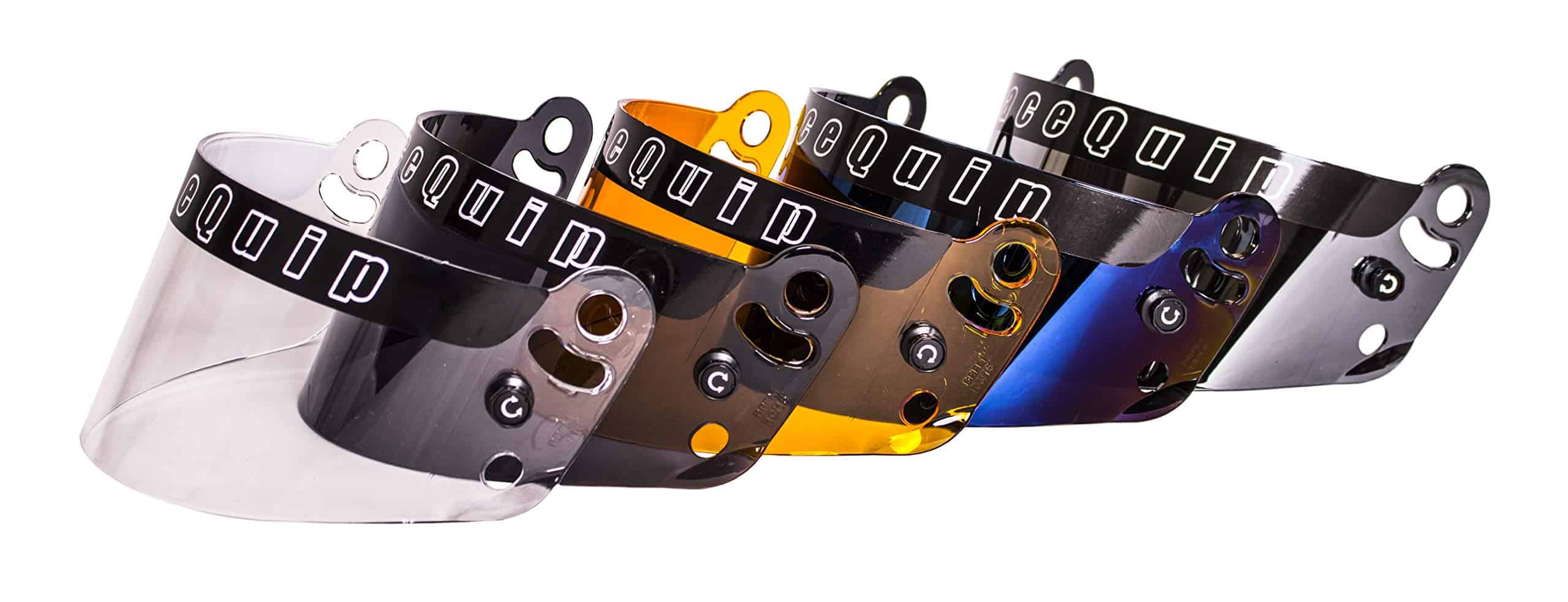 RaceQuip ofrece seis viseras de casco diferentes para satisfacer cualquier condición de carrera que puedas encontrar. Desde reemplazos estándar claros hasta tintes claros y oscuros para condiciones de luz solar variables y ámbar para carreras nocturnas, RaceQuip te tiene cubierto. RaceQuip también ofrece una visera de humo de espejo y una visera de estilo azul iridio para aquellos a quienes les gusta lucir bien mientras mantienen el sol fuera de sus ojos. Todas las viseras son de policarbonato de alta resistencia libre de distorsiones y tienen una tira de visera y postes TearOff incluidos. Las viseras SA tienen 3 mm de grosor.