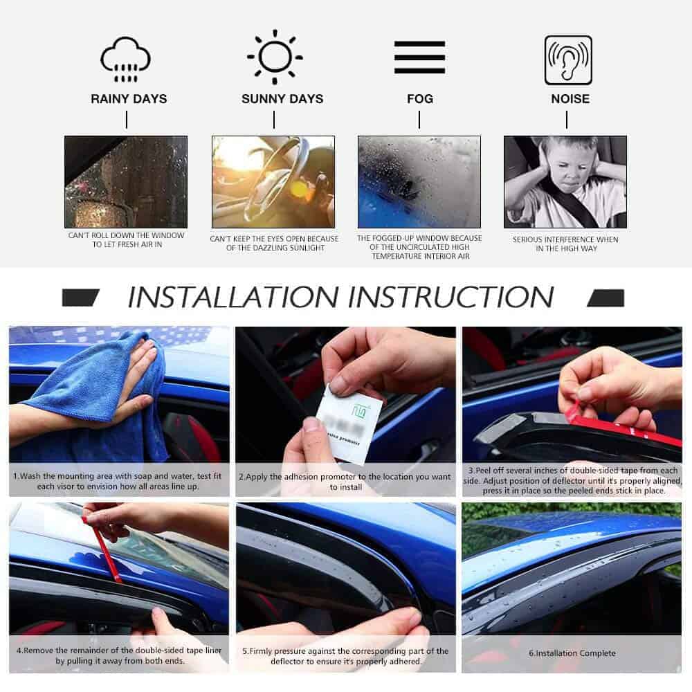 La visera de ventana es un accesorio perfecto para tu Honda CRV, proporcionando estilo y funcionalidad. Esta visera está fabricada en acrílico tintado ahumado semi-transparente que ayuda a reducir el ruido del viento y la exposición a los rayos UV del sol. El diseño mejorado con estilo deportivo ondulado en 3D proporciona una apariencia más agresiva. Viene con un juego de 4 piezas de viseras de ventana y todo el hardware necesario para una instalación sencilla en menos de 10 minutos desde la comodidad de tu hogar. ¡Sigue nuestra guía de instalación para asegurar un ajuste perfecto y seguro en tu vehículo!