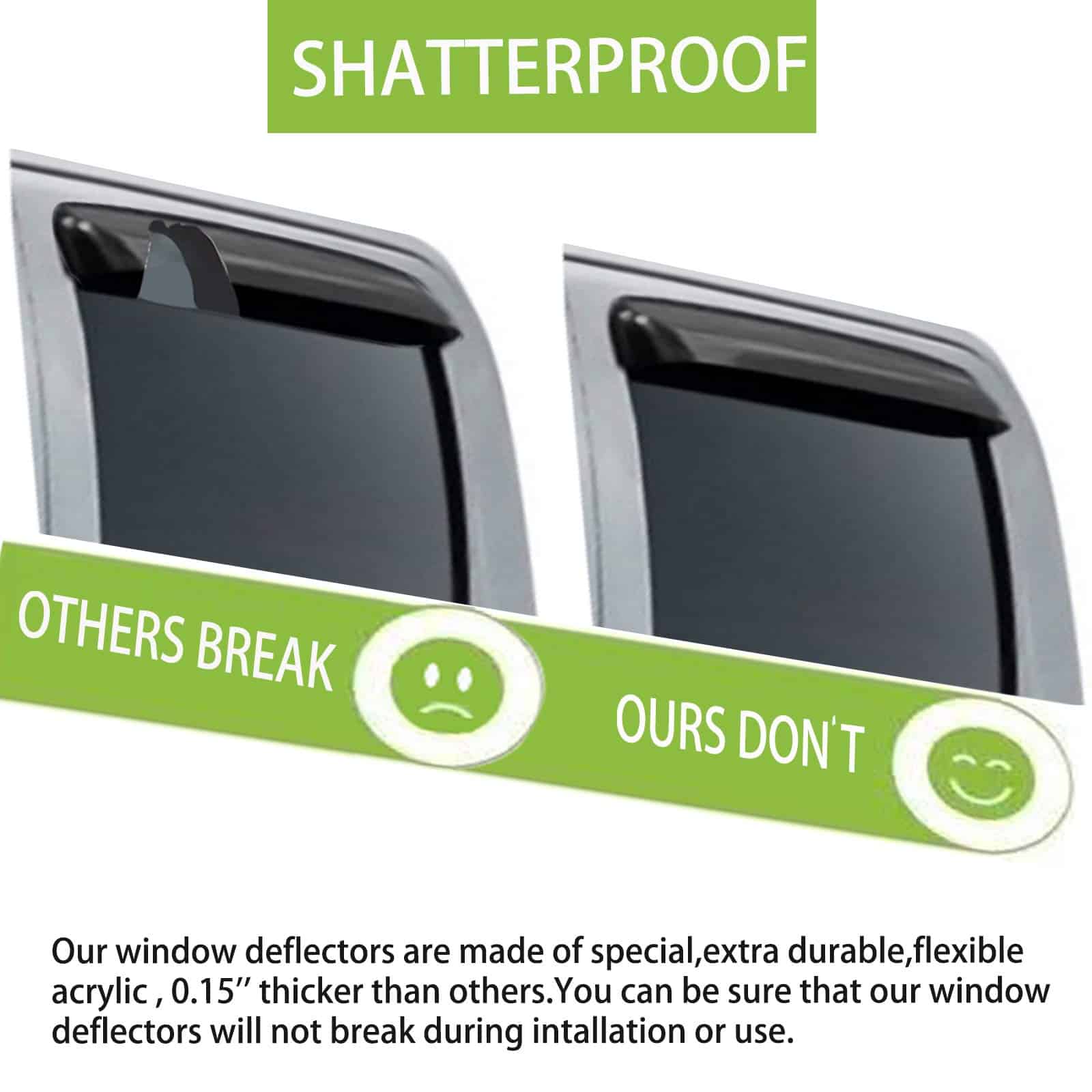 Las viseras de ventanas laterales están fabricadas con material acrílico reforzado, que no se deforma ni se agrieta incluso en climas calurosos y fríos, protegiéndote del calor, viento, lluvia y daños ambientales mientras estás en la carretera.