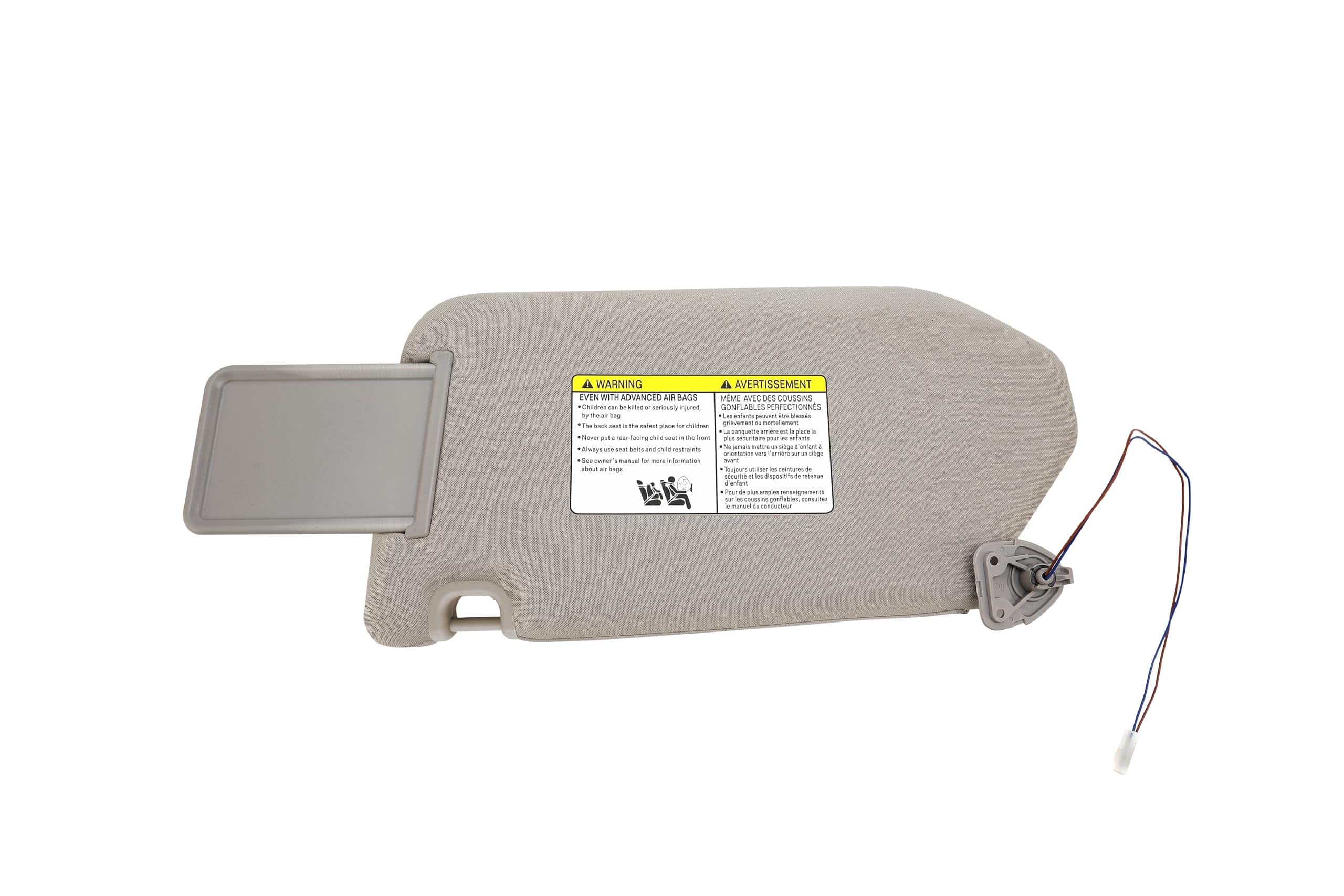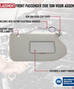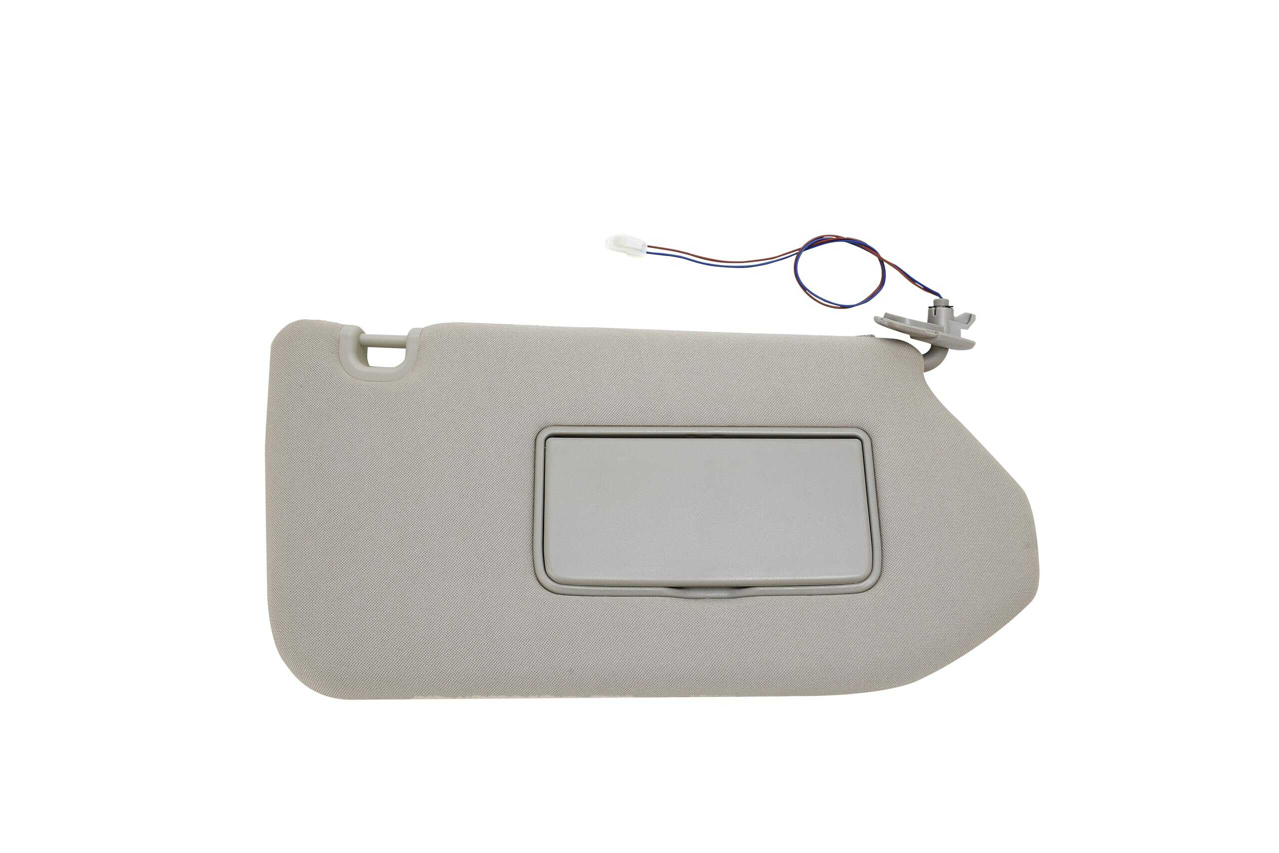 1. Visera del lado derecho del pasajero de reemplazo en color gris – es una parte del vehículo que ayuda a proteger al pasajero del sol u otras luces brillantes no deseadas, especialmente al conducir contra ella. La mayoría de las viseras, en particular esta, incluyen un espejo de tocador y luz para que el pasajero pueda ver su imagen de manera conveniente.