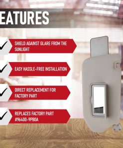 3. Reemplaza la parte 96400-9PB0A, 96400-3JA0A, 964009PB0A, 964003JA0A que se encuentran comúnmente en los populares modelos de Pathfinder incluyendo Platinum Hybrid, SV Hybrid, SL Hybrid, QX60 incluyendo los años 13, 14, 15, 16, 17, 18, 19. Con el tiempo, la visera de fábrica puede degradarse debido a la constante exposición al sol, lo que también causa que sus clips y bisagras se deterioren.