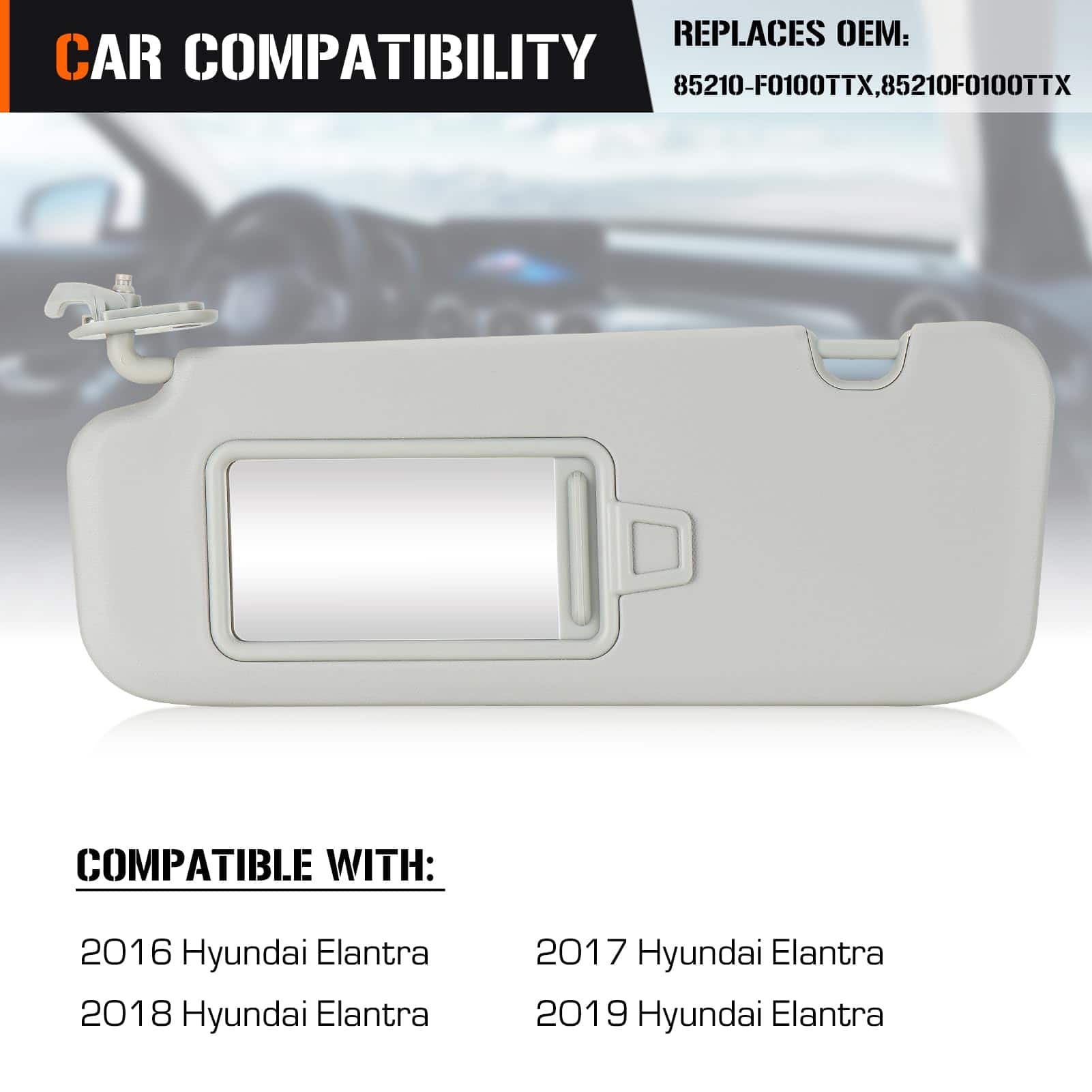 1. Visera del Sol Izquierda y Derecha Compatible con: para Hyundai Elantra 2017-2019.