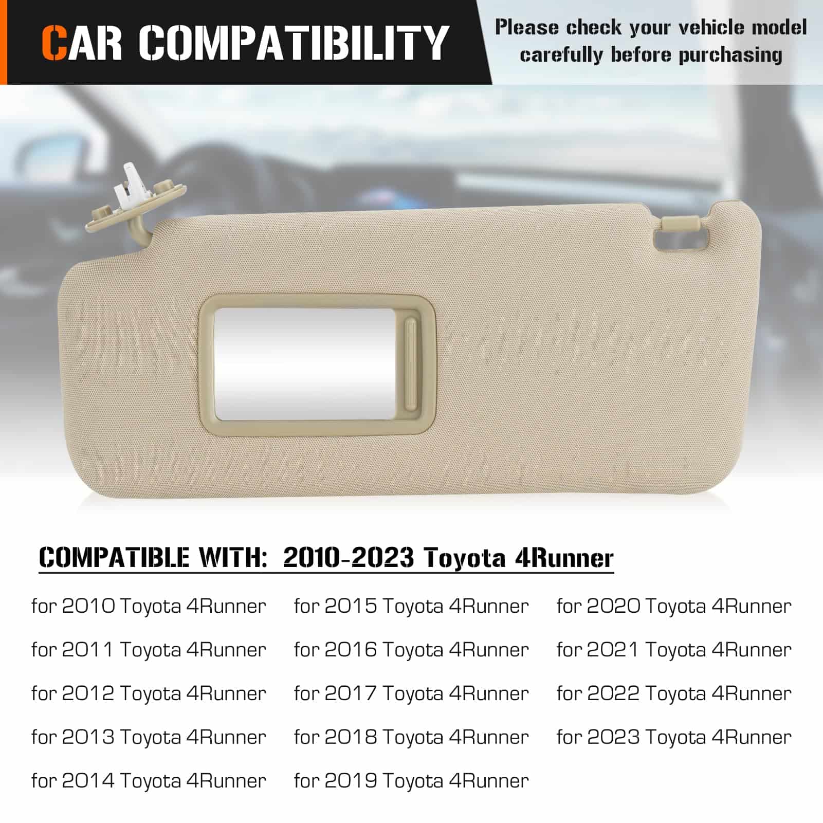 1. Visera para Sol Izquierda del Conductor y Derecha del Pasajero Compatible con: para Toyota 4Runner 2010-2023.