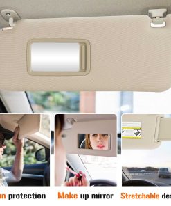4. Instalación Fácil: Instalación sin problemas, la visera solar se puede instalar fácilmente y encaja en su automóvil. Nota: Beige, El cable de la luz del espejo está integrado en la visera solar para conectar la luz del espejo en su automóvil. Por lo tanto, la visera en sí no tiene luz de espejo.