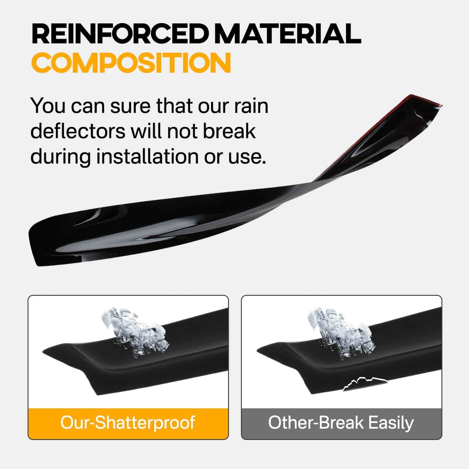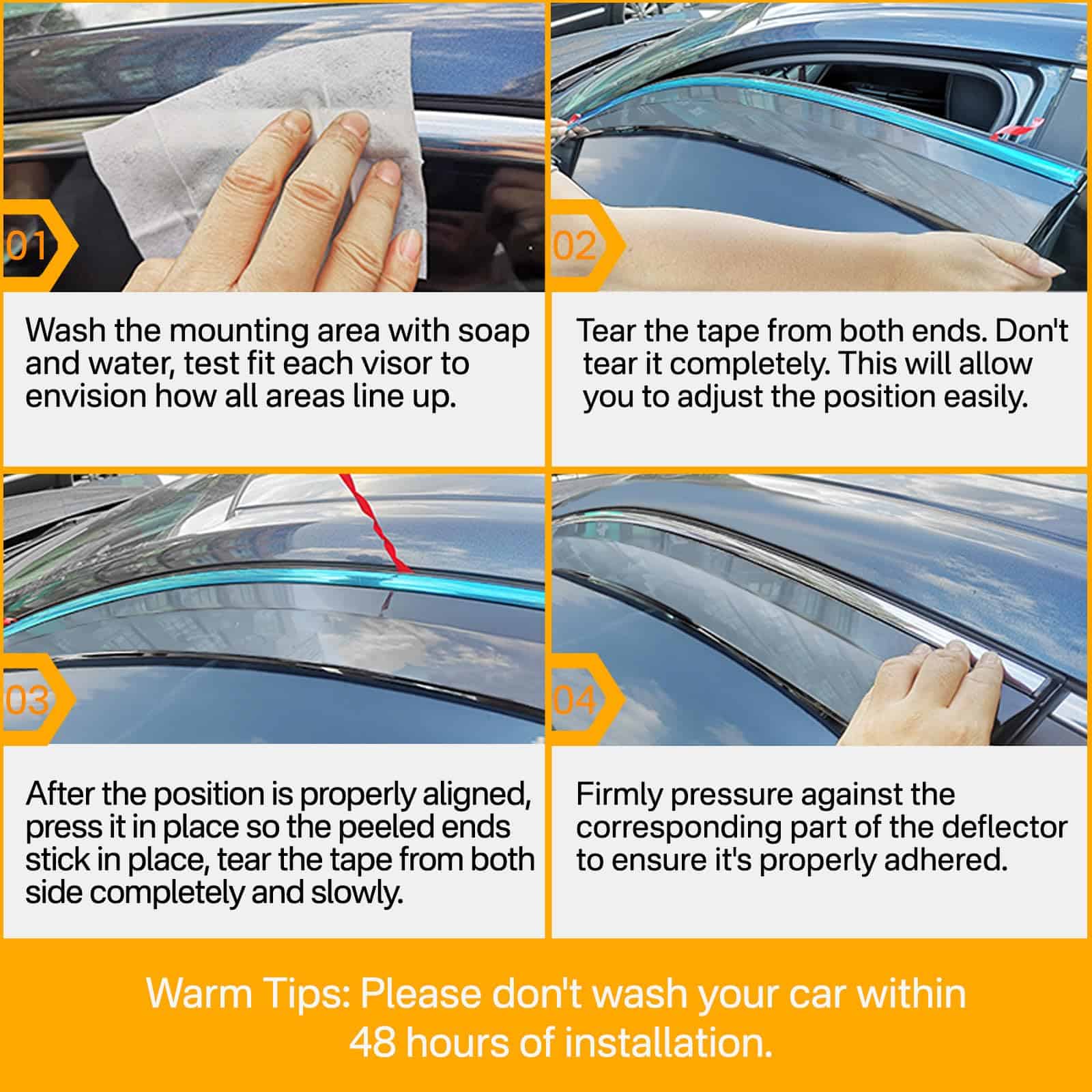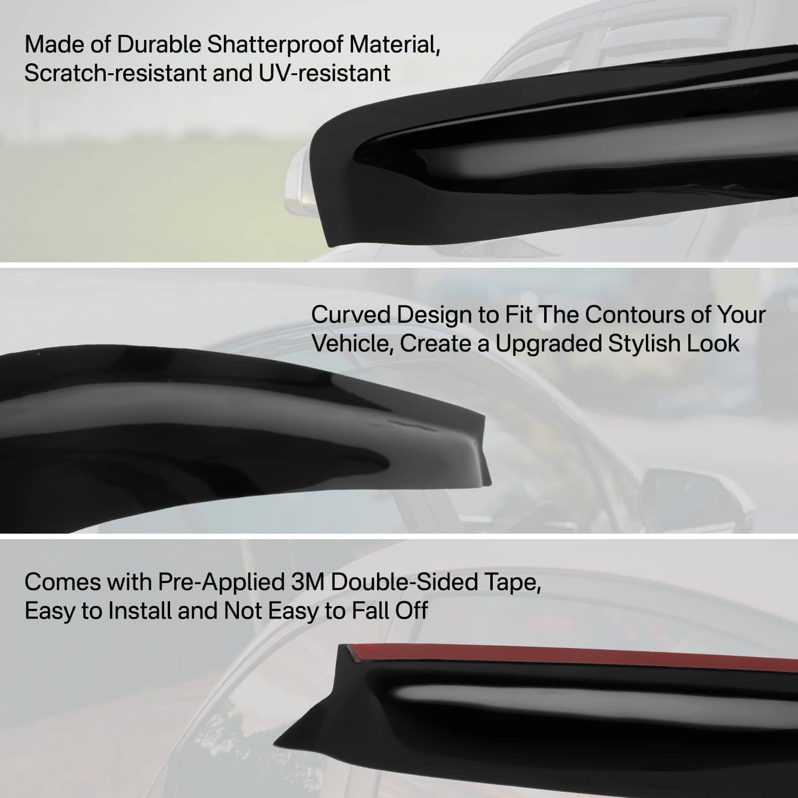 3. Material Premium: Estos deflectores de sol y lluvia están fabricados con material acrílico duradero y a prueba de impactos con excelente resistencia a los rayos UV y arañazos, seguro para el lavado de autos, y no se desvanecerán ni descolorarán debido a la exposición al sol.