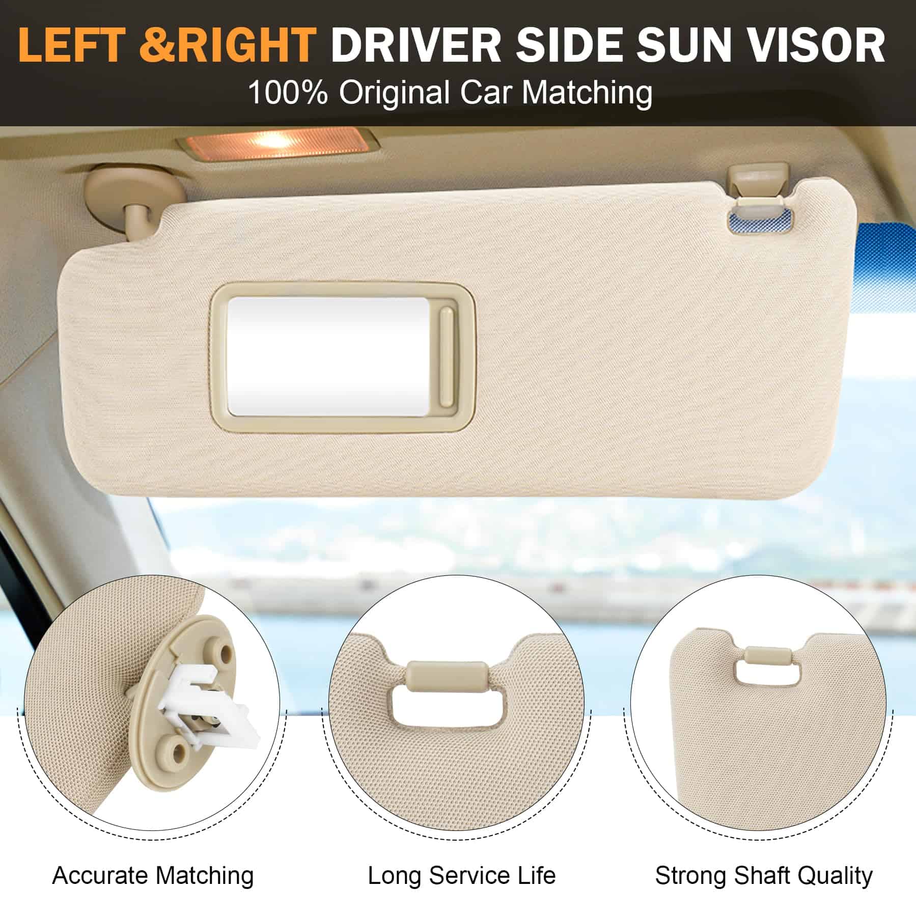 Esta visera solar beige izquierda del conductor y derecha del pasajero con luz de vanidad es una excelente opción para reemplazar tu visera desgastada o dañada en tu Toyota 4Runner 2010-2023. Hecha de plástico ABS duradero y algodón elástico de alta calidad, esta visera solar garantiza una gran durabilidad y resistencia a lo largo del tiempo. Además, su diseño multifuncional te permite bloquear la luz solar intensa y mantener tu seguridad en la carretera mientras te proporciona un espejo claro y luz de vanidad para organizar tus pertenencias. Con una garantía de 12 meses, puedes estar seguro de la calidad y confiabilidad de este producto. ¡No esperes más y obtén esta visera solar de alta calidad para tu Toyota 4Runner hoy mismo!