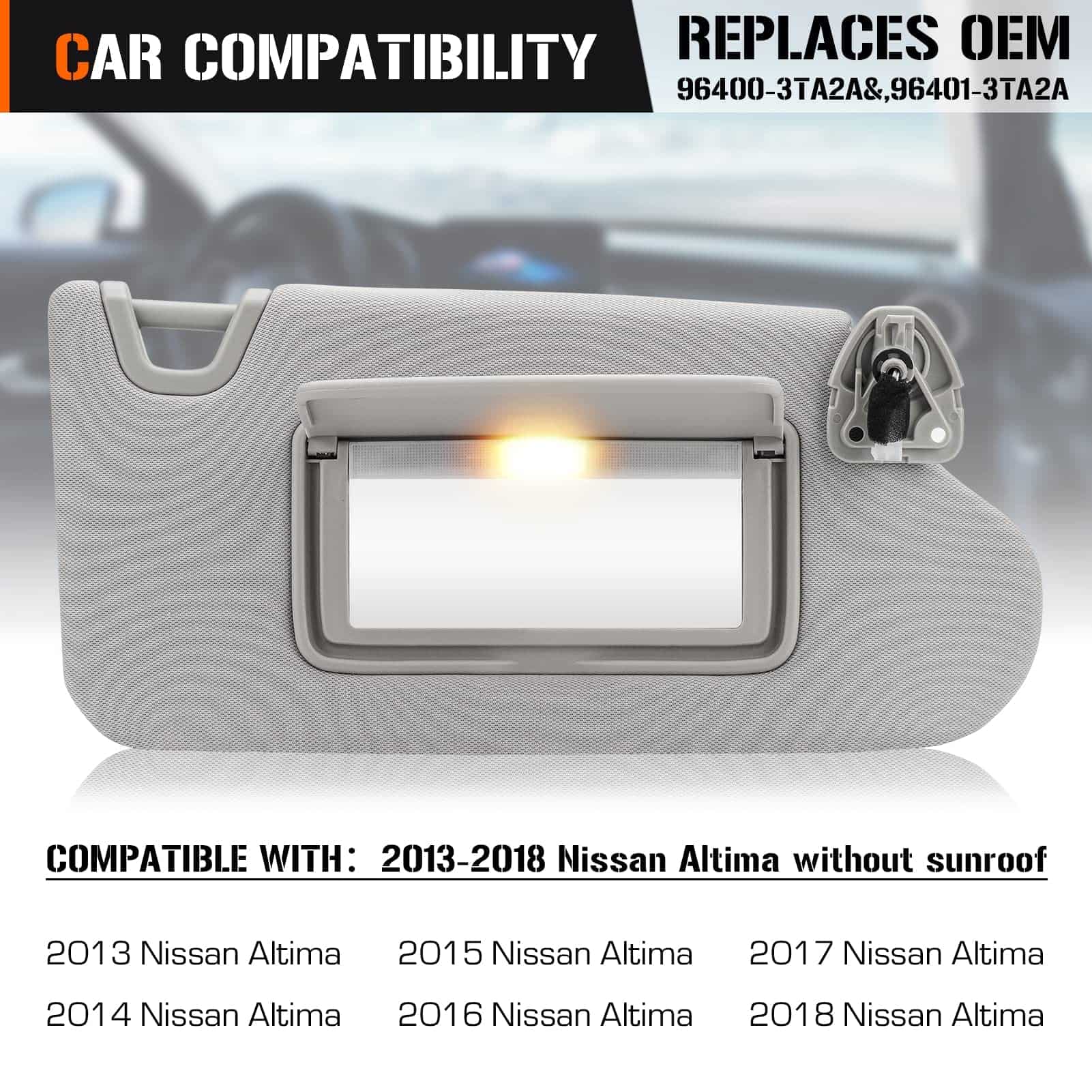 1. Visera solar izquierda del conductor y derecha del pasajero compatible con: Nissan Altima 2013 2014 2015 2016 2017 2018 (sin techo solar).
