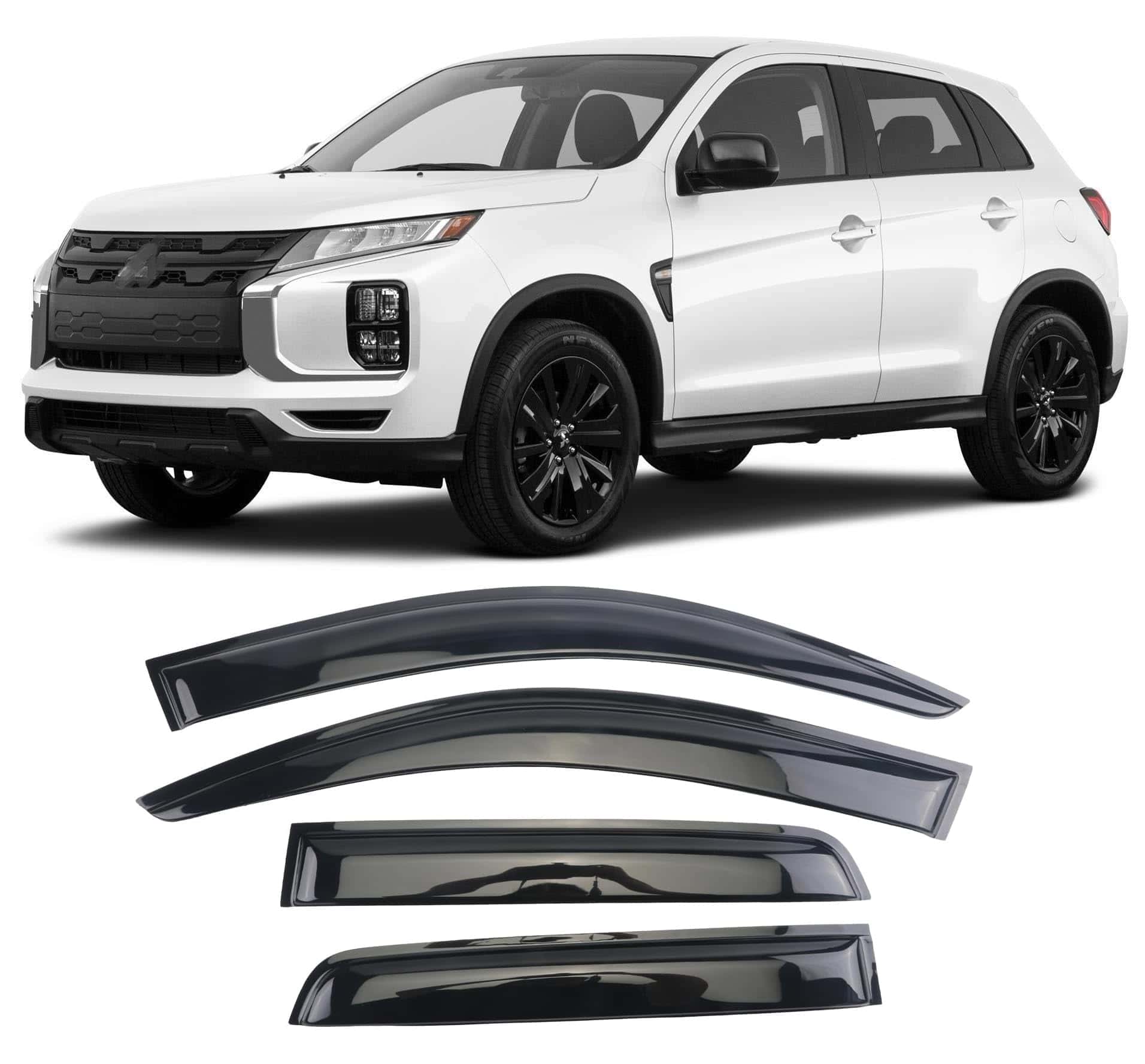 Viseras de ventana de montaje adhesivo para Mitsubishi Outlander Sport/ASX, diseñadas para adaptarse a modelos desde 2011 hasta 2023. Este juego completo de 4 piezas incluye viseras frontales y traseras para proporcionar una cobertura completa a todas las ventanas del vehículo. Fabricadas con acrílico duradero y resistente a la intemperie, estas viseras tienen un acabado ahumado que las hace atractivas y funcionales. Además, su diseño UV-resistente y resistente a la decoloración garantiza una durabilidad excepcional a lo largo de todas las estaciones.