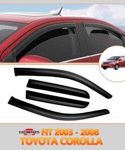 Proteja su Toyota Corolla del sol y la lluvia con estas viseras para ventanas de montaje en cinta. Fabricadas en acrílico negro ahumado resistente a los rayos UV, impactos y grietas, estas viseras ofrecen una protección duradera para su vehículo. Con una instalación rápida y sencilla gracias a la cinta adhesiva 3M preaplicada, estas viseras son una solución práctica para permitir el ingreso de aire fresco mientras mantienen la lluvia fuera. Reduzca el calor interior y el deslumbramiento del sol, y minimice el ruido del viento durante la conducción en carretera. Compatibles con Toyota Corolla 2003-2008, estas viseras son la elección perfecta para proteger su vehículo y mejorar su comodidad mientras conduce.