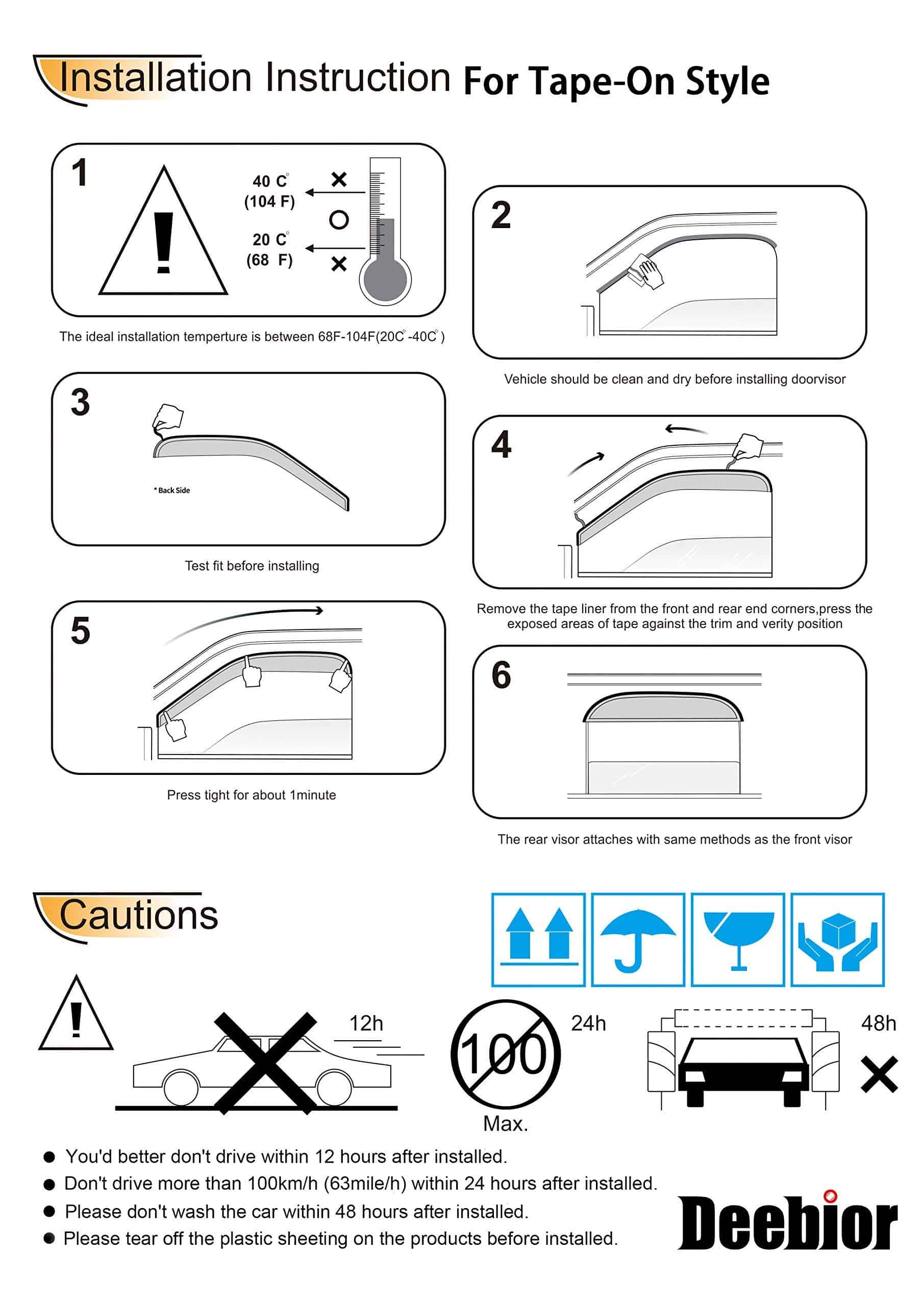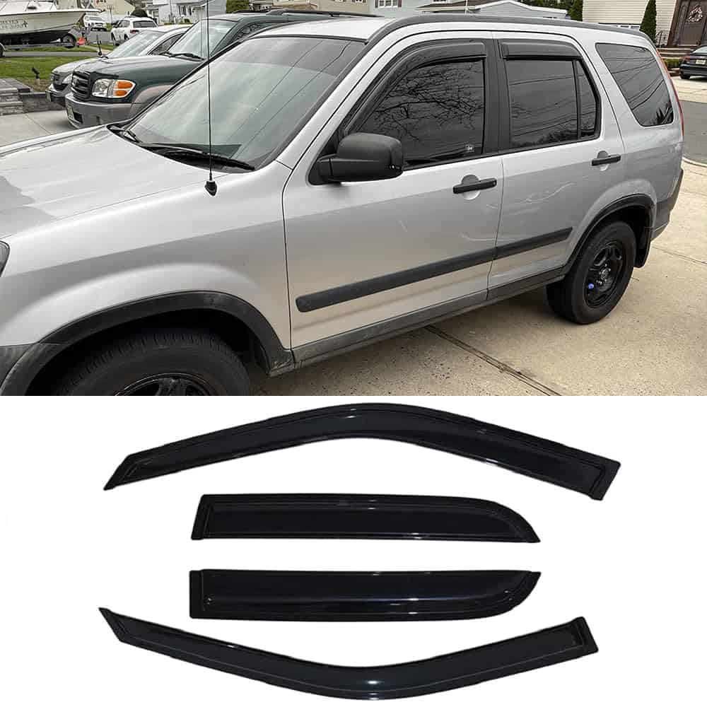 4. DURADERO Y ELEGANTE: Nuestro Deflector de Ventana está hecho con acrílico reforzado de alta calidad y resistente, no se doblará, romperá ni agrietará. El diseño flexible y aerodinámico de color humo oscuro es elegido como el mejor para la protección solar, además de mejorar la apariencia de su vehículo.