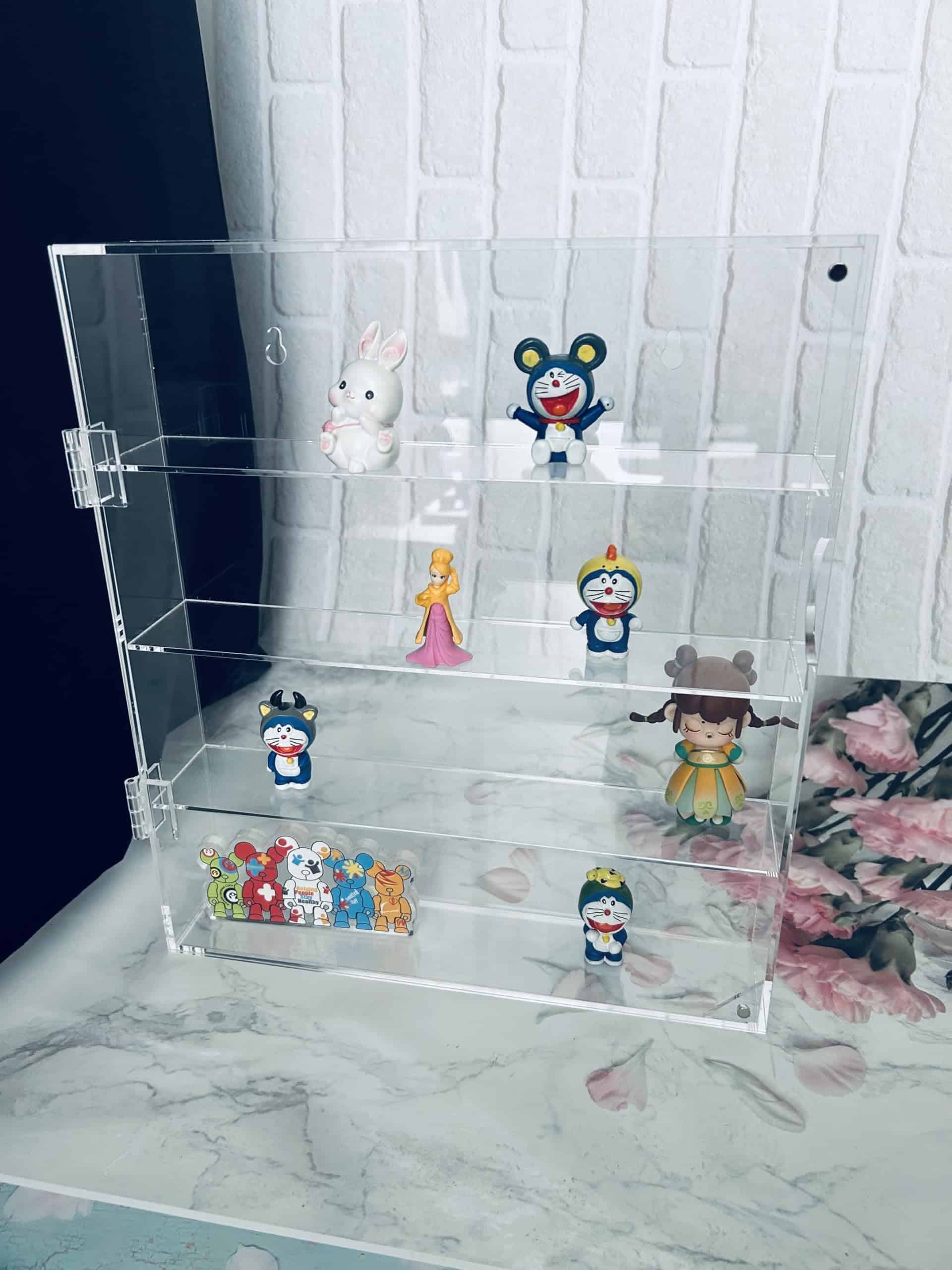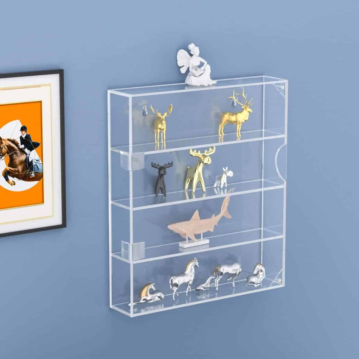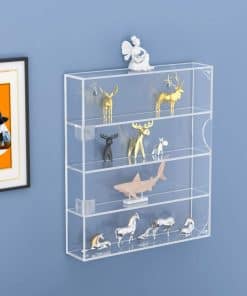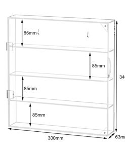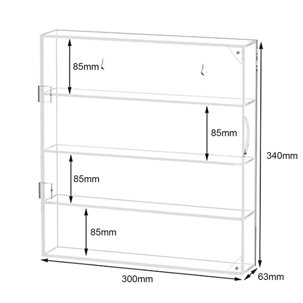 Tamaño: 340x300x63mm. Productos incluidos: 1 x vitrina de acrílico, 2 x tornillos. Grosor del panel de la puerta aproximadamente 3mm. Dos opciones de colocación: montado en la pared o de pie. Buena estabilidad. Diseño de puerta con imanes para mantener sus colecciones favoritas libres de polvo. La posición del dedo está desfasada con la posición del panel de la puerta, lo que hace que abrir y cerrar la puerta sea más conveniente. Este gabinete de almacenamiento es adecuado para exhibiciones de mercancía, exhibiciones de oficina, exhibiciones casuales en casa e incluso uso en ferias comerciales. La vitrina de acrílico es perfecta para almacenar cualquier tipo de juguetes de acción, figuras pop de funko, mini muñecas, piedras pequeñas y mucho más.