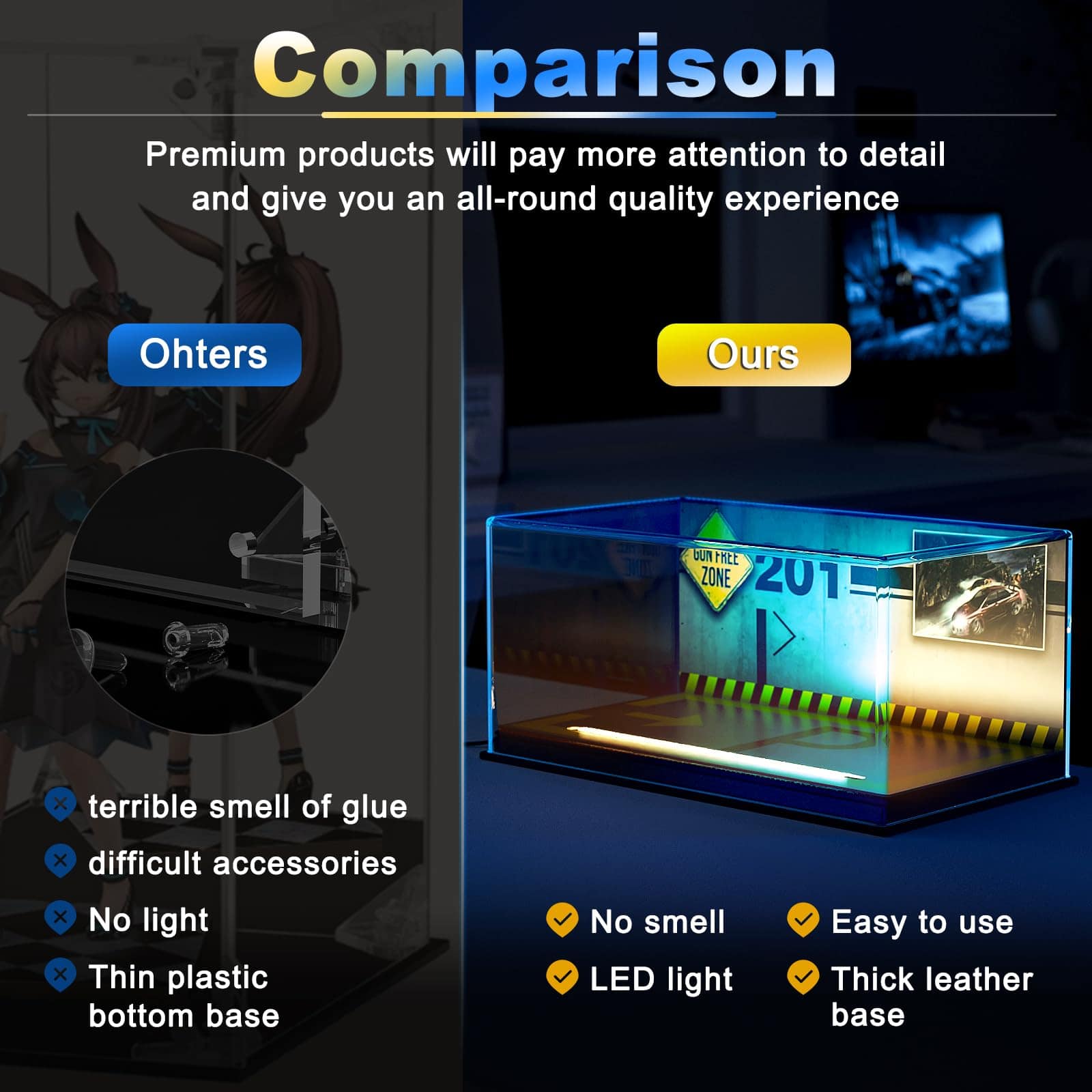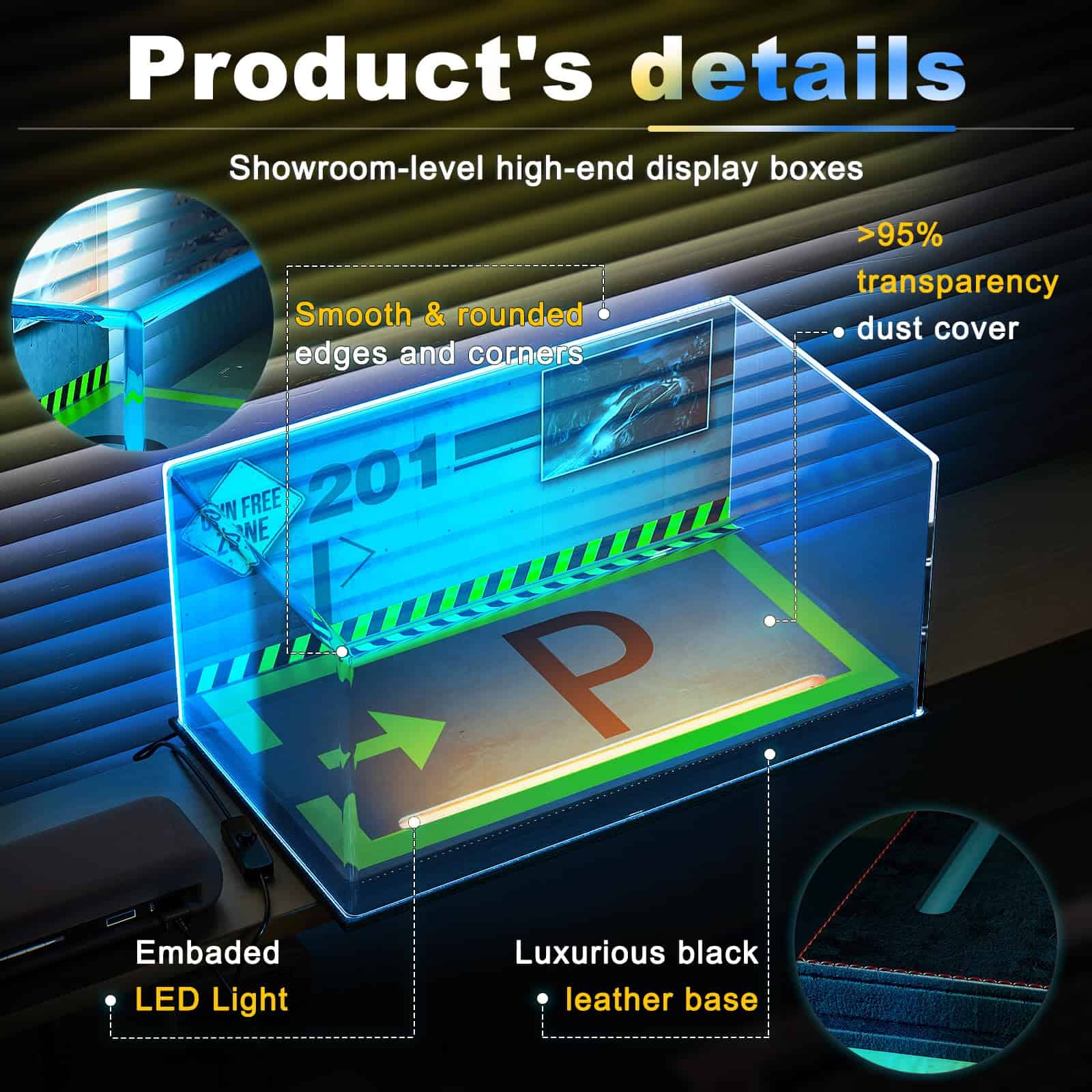 Luz LED lujosa – La tapa superior de esta caja está incrustada con un anillo de LED conector USB. Puede proporcionar iluminación cálida blanca para sus exhibiciones.