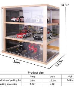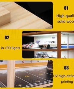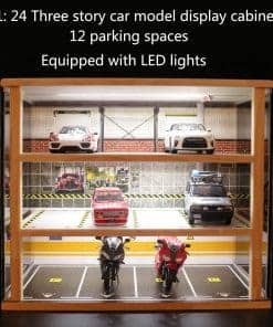 Este estuche de exhibición para modelos de coches a escala 1:24 es ideal para resaltar tus coches de colección favoritos. Con un diseño realista de escena de garaje, luces LED incorporadas y una cubierta de acrílico transparente a prueba de polvo, podrás crear la atmósfera perfecta para mostrar tus valiosas colecciones. Además, su fácil montaje lo convierte en una opción conveniente para exhibir tus coches de ruedas de metal fundido caliente tanto en la oficina como en casa. ¡No esperes más y muestra tus coches a escala con estilo y elegancia con este estuche de exhibición de alta calidad!