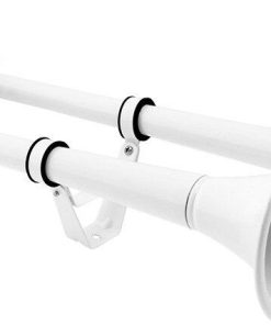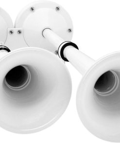 Este potente y libre de mantenimiento claxón eléctrico de dos trompetas en blanco está fabricado con un material de acero inoxidable 100% no magnético que no se oxidará. Especialmente diseñado para uso exterior, es ideal para aplicaciones marinas en un entorno de agua salada, pero también se puede utilizar en otros vehículos con sistema de 12V. La conexión es simple con solo cuatro cables, y no requiere un sistema de aire a bordo. Esto significa que no se necesita un compresor ni un tanque de aire para conquistar los mares. Claxón Eléctrico de Grado Marino (Blanco) Fuente de Energía: 12V Dos Trompetas 100% Acero Inoxidable Material de Grado 304 no magnético Acabado Blanco Brillante Máxima Protección Contra la Oxidación Libre de Mantenimiento Hardware de Montaje Incluido Ideal para Barcos, RV’s, SUV’s y Camionetas Dimensiones: Trompetas: 15 pulgadas L, 18 pulgadas L