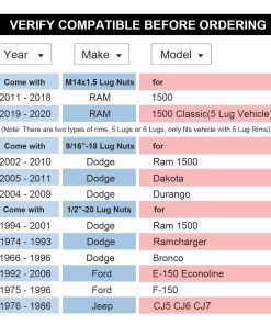Por favor, verifica que el recuento de pernos, el diámetro del círculo de pernos, la abertura central y el tamaño del perno coincidan con tu vehículo antes de hacer el pedido.