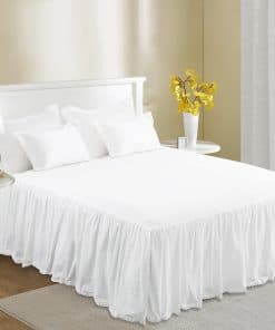Falda de cama fruncida blanca de tamaño individual con una caída de 21 pulgadas. Diseñada con un elegante borde de encaje de ganchillo que agrega un toque de romance francés a tu dormitorio. Fabricada con 100% algodón ligero que proporciona un efecto flexible y fluido, siendo más suave, transpirable, sin electricidad estática y amigable con la piel. Las esquinas divididas permiten utilizar la falda en marcos de cama con cabecero, camas con dosel y camas con elevadores. Además, cuenta con un buen encogimiento para garantizar que no se deforme después de lavarla.