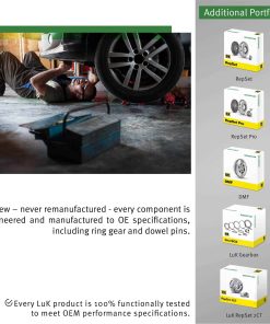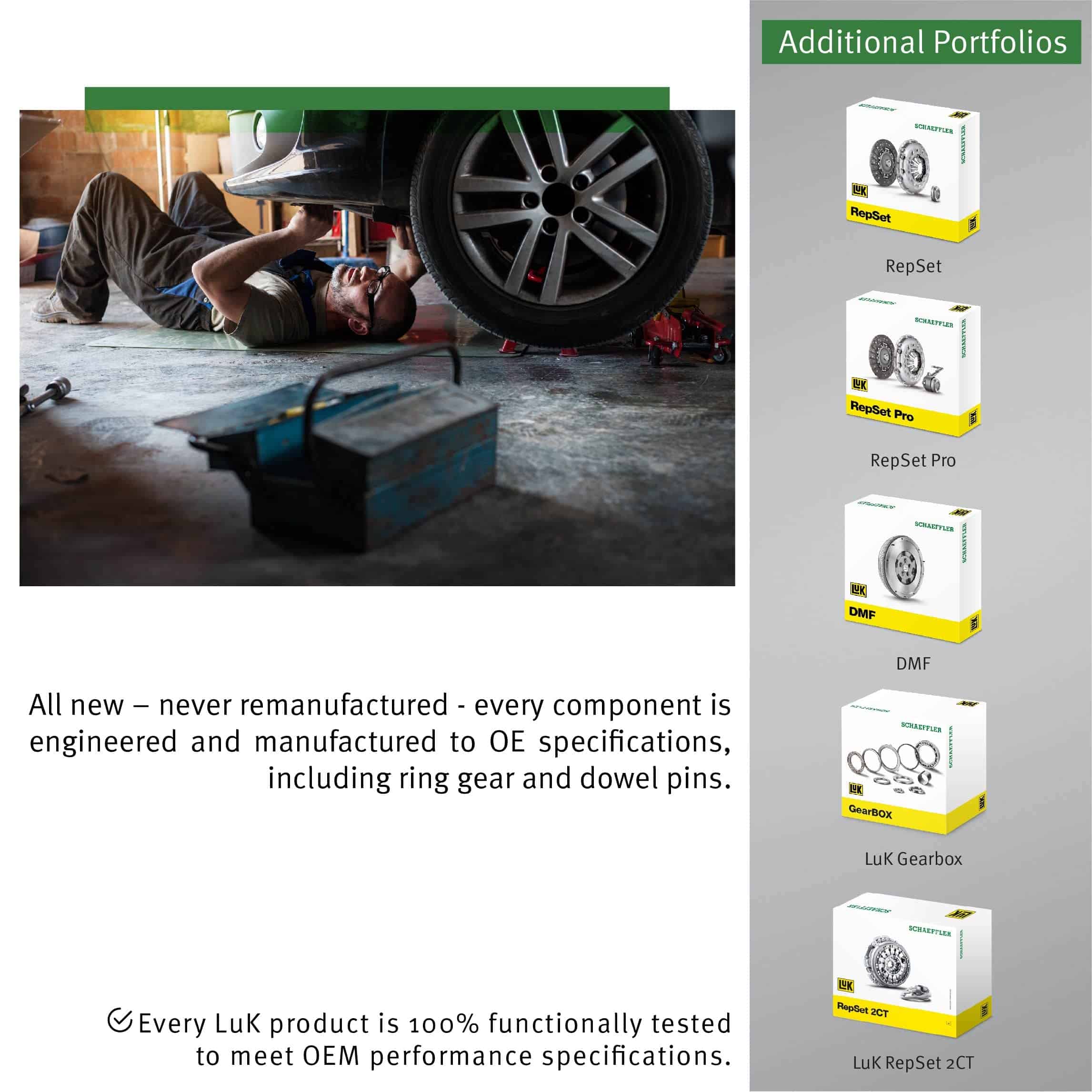 Combinar su nuevo LuK RepSet con un nuevo volante LuK es una alternativa inteligente y rentable al resurfacing. El pedido en un solo paso asegura que usted obtenga los componentes correctos para su aplicación y el ajuste correcto para una instalación sin problemas. No se arriesgue con piezas cuestionables. Instale un nuevo volante LuK de calidad de equipo original y maximice el rendimiento y la vida útil de su embrague.