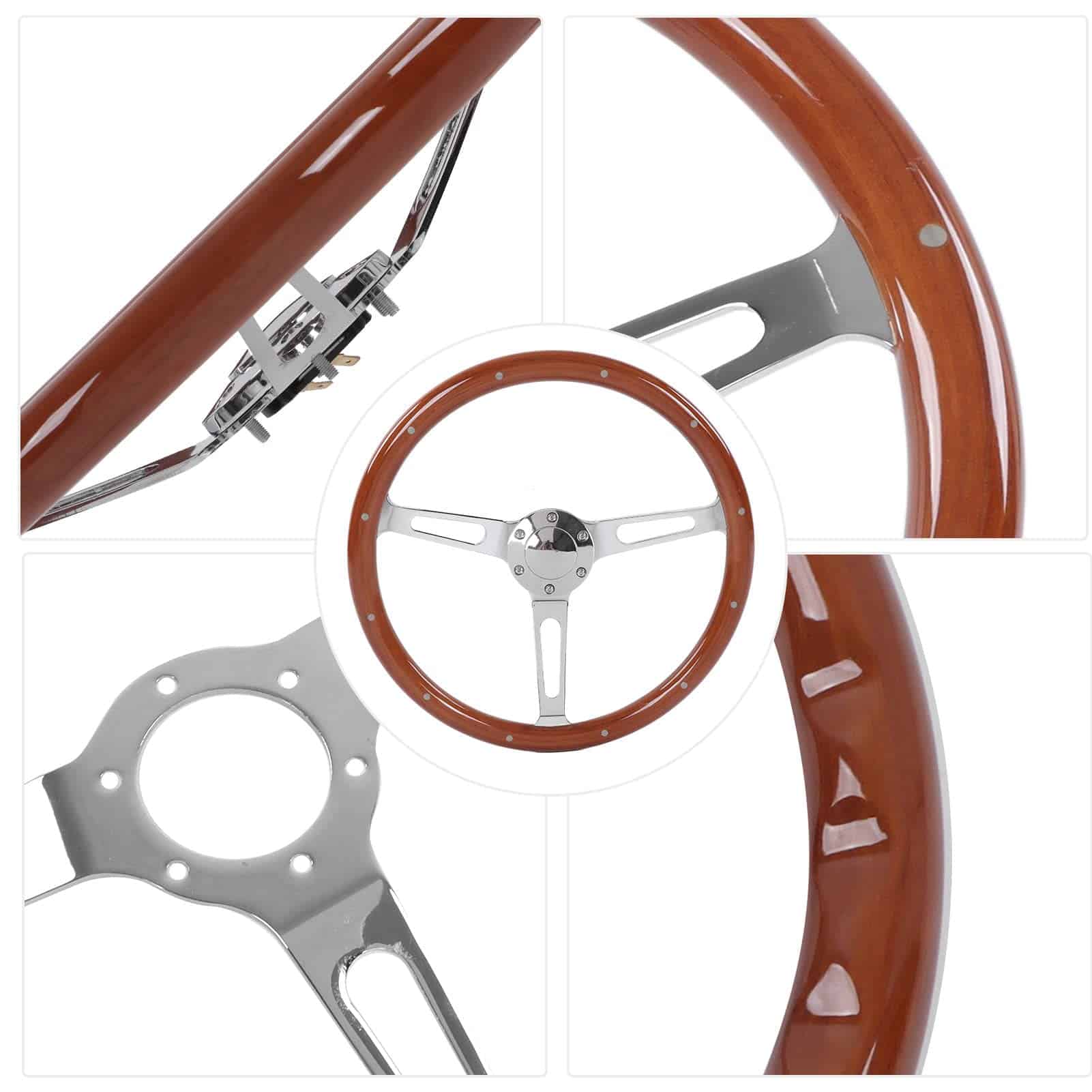 5. Producción de Alta Precisión: el volante de agarre de madera tiene un diámetro aproximado de 380 mm (15 pulgadas) y una profundidad de plato de 50 mm (1.97 pulgadas), después de una producción de alta precisión.