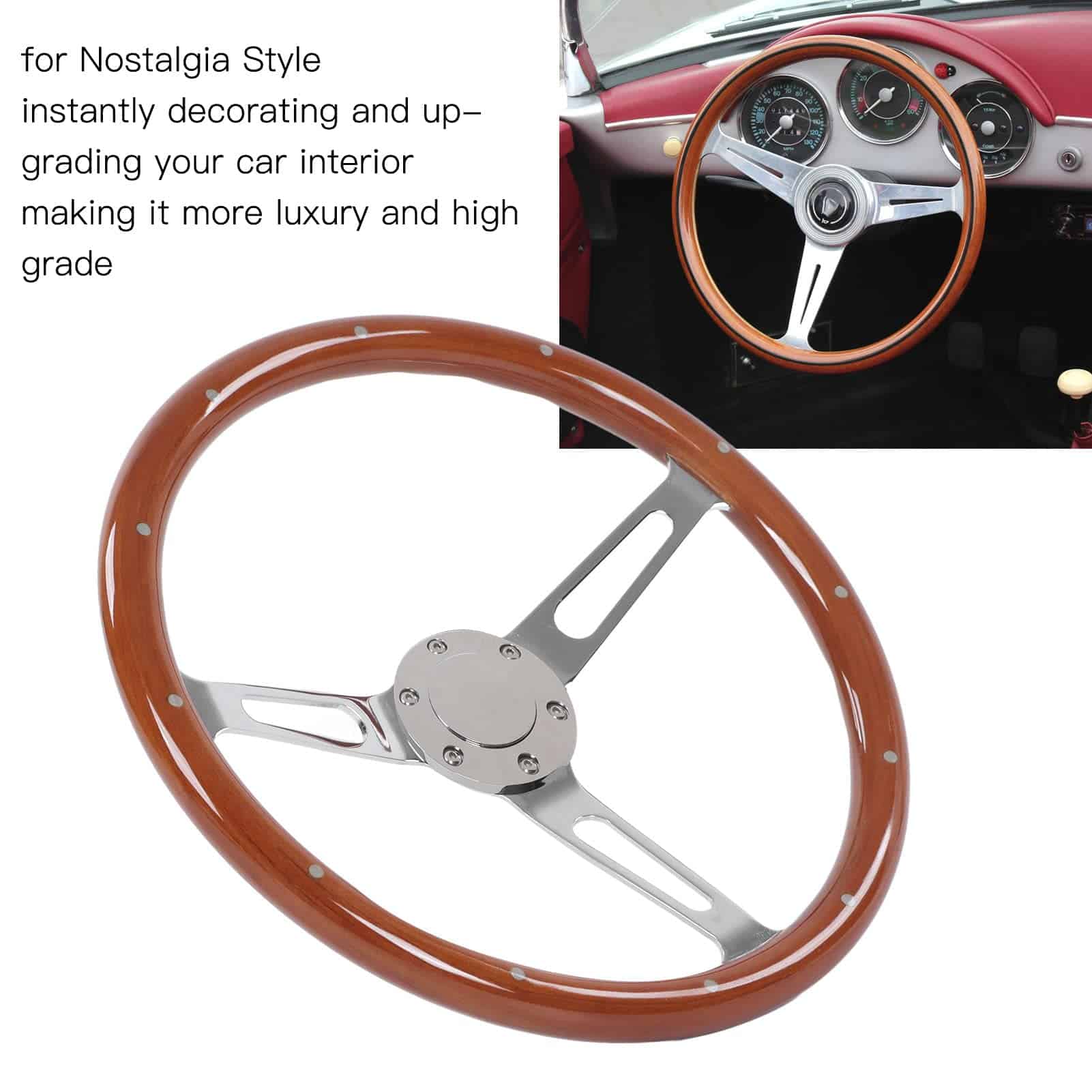 4. Exquisita Artesanía: el volante de madera vintage está especialmente diseñado para el estilo de Nostalgia, decorando e mejorando instantáneamente el interior de tu coche, haciéndolo más lujoso y de alta gama.