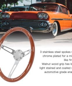 3. Construcción: 3 radios de acero inoxidable con cromado para un acabado similar al espejo. El agarre de madera de nogal ha sido ligeramente teñido y recubierto con pintura de esmalte de grado automotriz.