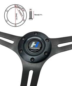 Volante Clásico de Madera de 14 pulgadas Hiracing Universal con 3 Radios Cepillados y Profundidad de 1.5 pulgadas con Botón de Claxon 6 pernos es una excelente opción para mejorar la apariencia y la sensación de tu volante. Hecho de aluminio y madera, este volante proporciona un ajuste cómodo y una sensación de lujo al conducir. Se adapta a la mayoría de los coches y vehículos con un adaptador de cubo de 70 mm (2.75″) de 6 pernos (los adaptadores no están incluidos), por lo que es una opción versátil. El diseño aerodinámico y ergonómico del volante garantiza un agarre cómodo y una experiencia de conducción mejorada. ¡Mejora tu coche con este elegante volante Hiracing!