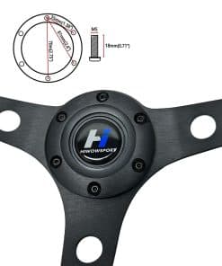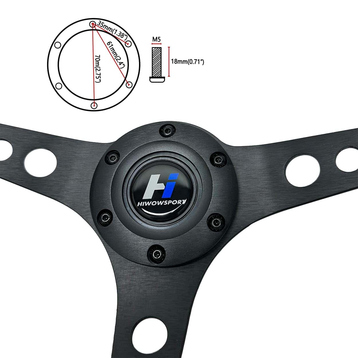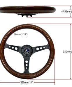 Hiracing 14inch Universal Classic Wood Grain Steering Wheel Brushed 3 Spoke 1.5inch Depth Racing Steering Wheel with Horn Button 6 bolts