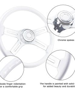 El producto de volante de camión es de 18 pulgadas de diámetro. La parte trasera del volante de camión tiene surcos suaves para los dedos para un agarre cómodo. El volante es universal pero requiere una base de montaje específica para el vehículo (adaptador) para la instalación. La base de montaje necesita ser comprada por separado. El volante de 3 agujeros es adecuado para una amplia gama de tipos de camiones, para Kenworth, Peterbilt, Volvo y Freightliner. Cualquier problema de calidad, no dude en contactarnos. QYMOPAY se enfoca en la integridad del producto y la satisfacción del cliente, proporcionando productos de alta calidad a precios razonables.